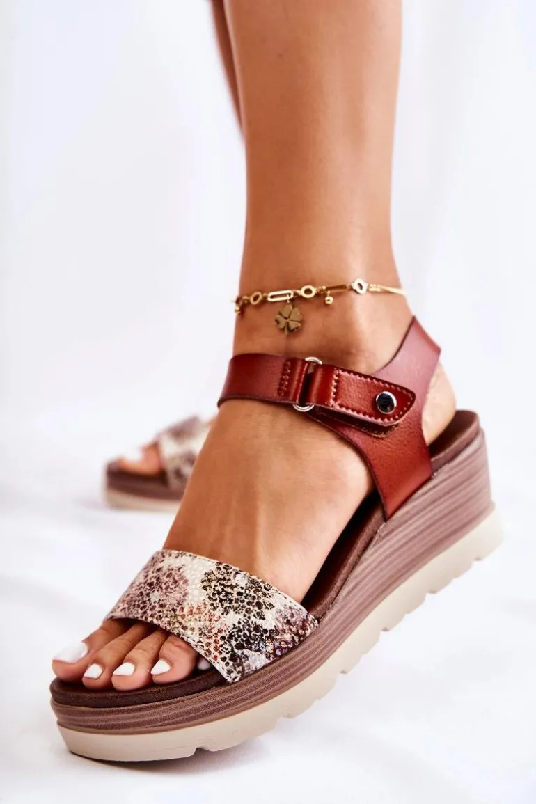 Sandały damskie wykonane z eko skóry. Zapinanie na rzep wokół kostki umożliwi odpowiednią regulację. Buty są osadzone na koturnie i delikatnej platformie. Sandały posiadają odkryty, zaokrąglony nosek. Miękka wkładka Comfort pozwoli na wygodne użytkowanie obuwia. Modny fason sprawdzi się do wielu stylizacji. Idealne buty na upalne dni! Przy wyborze rozmiaru prosimy sugerować się tabelą rozmiarów.