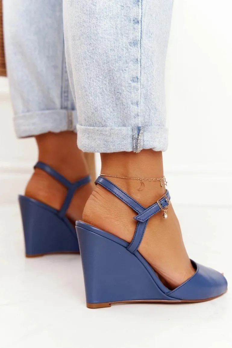 Skórzane Sandały Na Koturnie Laura Messi 2253 Granatowe