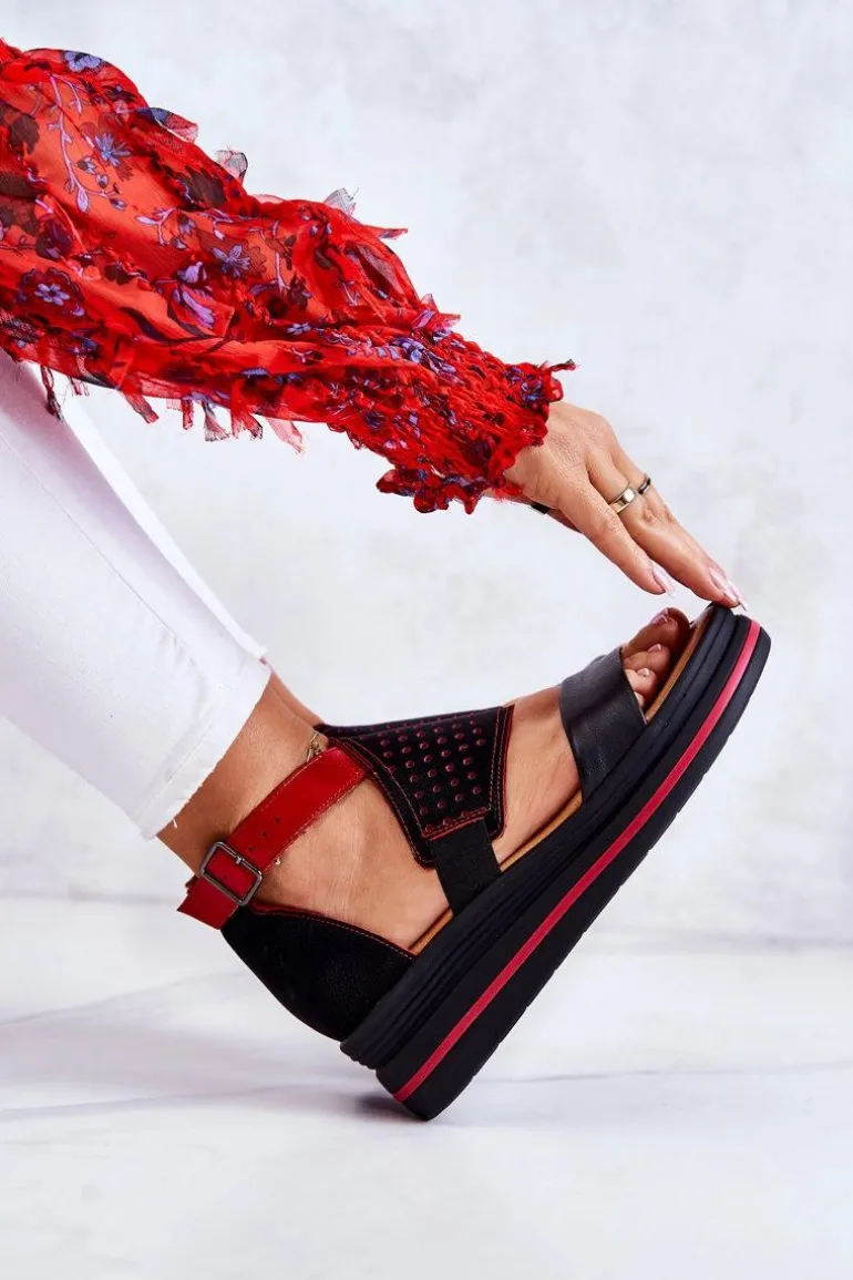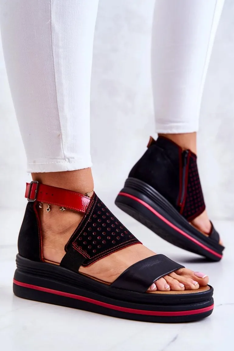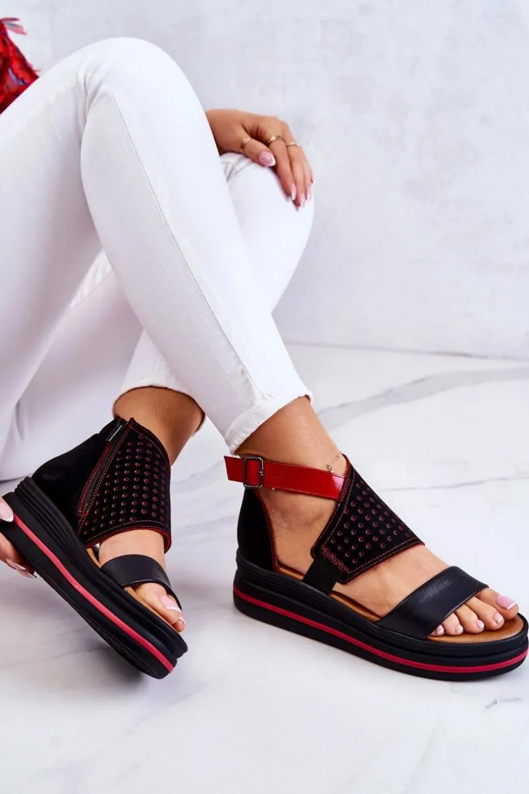 Piękne sandały na koturnie od polskiej marki Maciejka. Buty zostały wykonane z wysokiej jakości naturalnej skóry z dodatkowym, ażurowym wzorem. Miękka, skórzana wkładka to gwarancja wygody! Zapiętek usztywniany. Zakryta pięta, odkryte palce. Sandały posiadają gumkę pozwalającą na odpowiednie dopasowanie obuwia oraz regulowany pasek zapinany na sprzączkę. Posiadają także suwak ułatwiający zakładanie obuwia. Osadzone na platformie z koturnem. Koniecznie sprawdź całą naszą kolekcję butów marki Maciejka. Przy wyborze rozmiaru prosimy sugerować się tabelą rozmiarów.