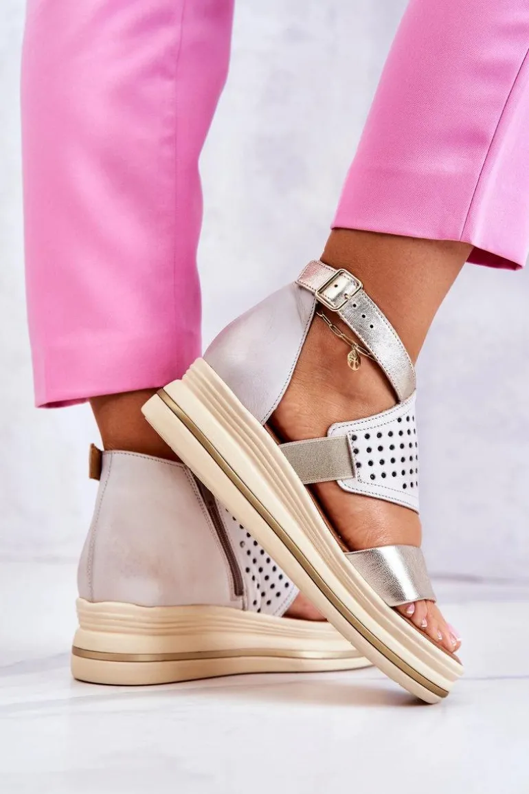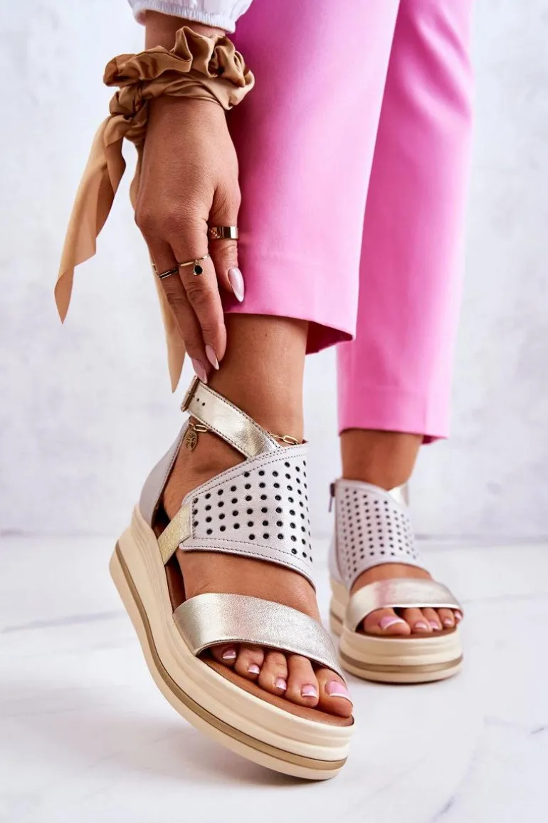 Piękne sandały na koturnie od polskiej marki Maciejka. Buty zostały wykonane z wysokiej jakości naturalnej skóry z dodatkowym, ażurowym wzorem. Miękka, skórzana wkładka to gwarancja wygody! Zapiętek usztywniany. Zakryta pięta, odkryte palce. Sandały posiadają gumkę pozwalającą na odpowiednie dopasowanie obuwia oraz regulowany pasek zapinany na sprzączkę. Posiadają także suwak ułatwiający zakładanie obuwia. Osadzone na platformie z koturnem. Koniecznie sprawdź całą naszą kolekcję butów marki Maciejka. Przy wyborze rozmiaru prosimy sugerować się tabelą rozmiarów.