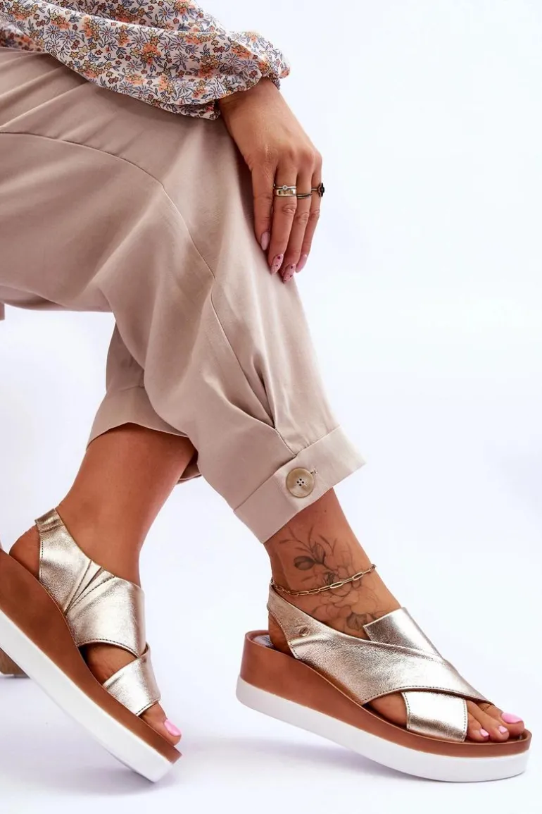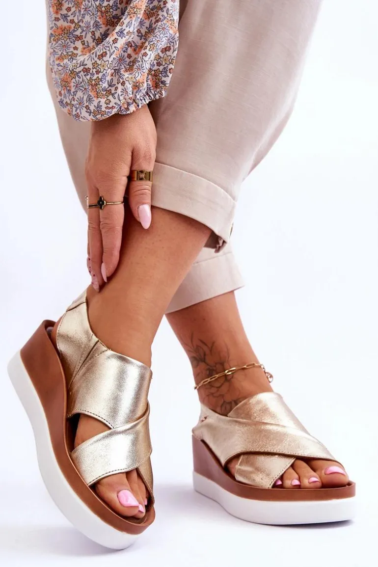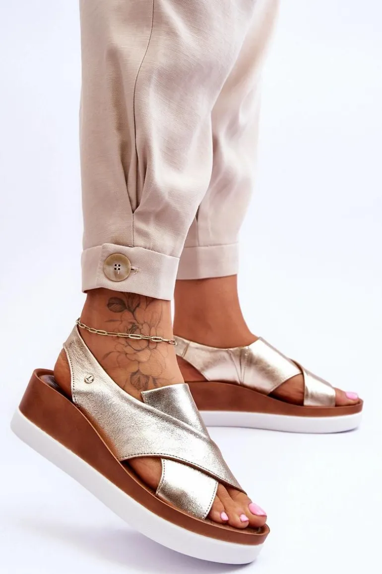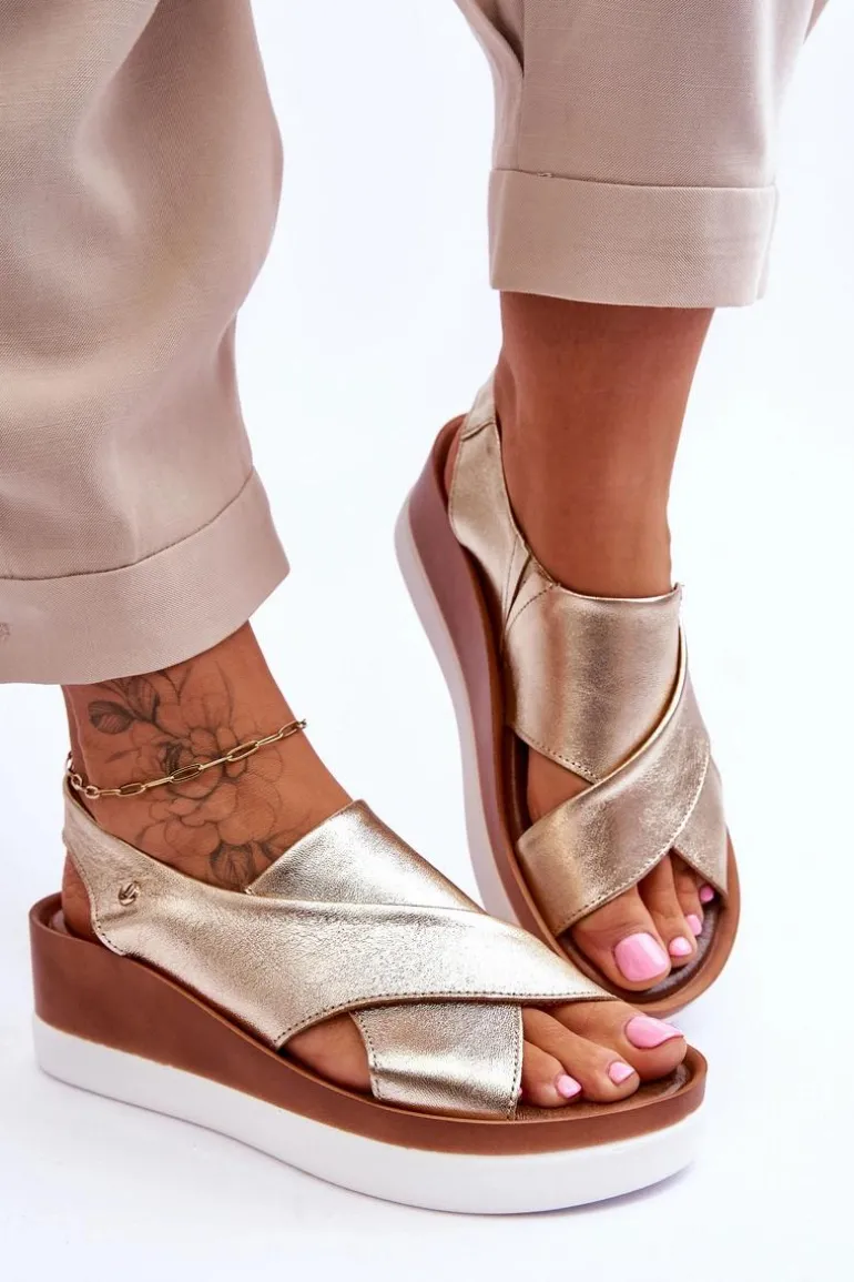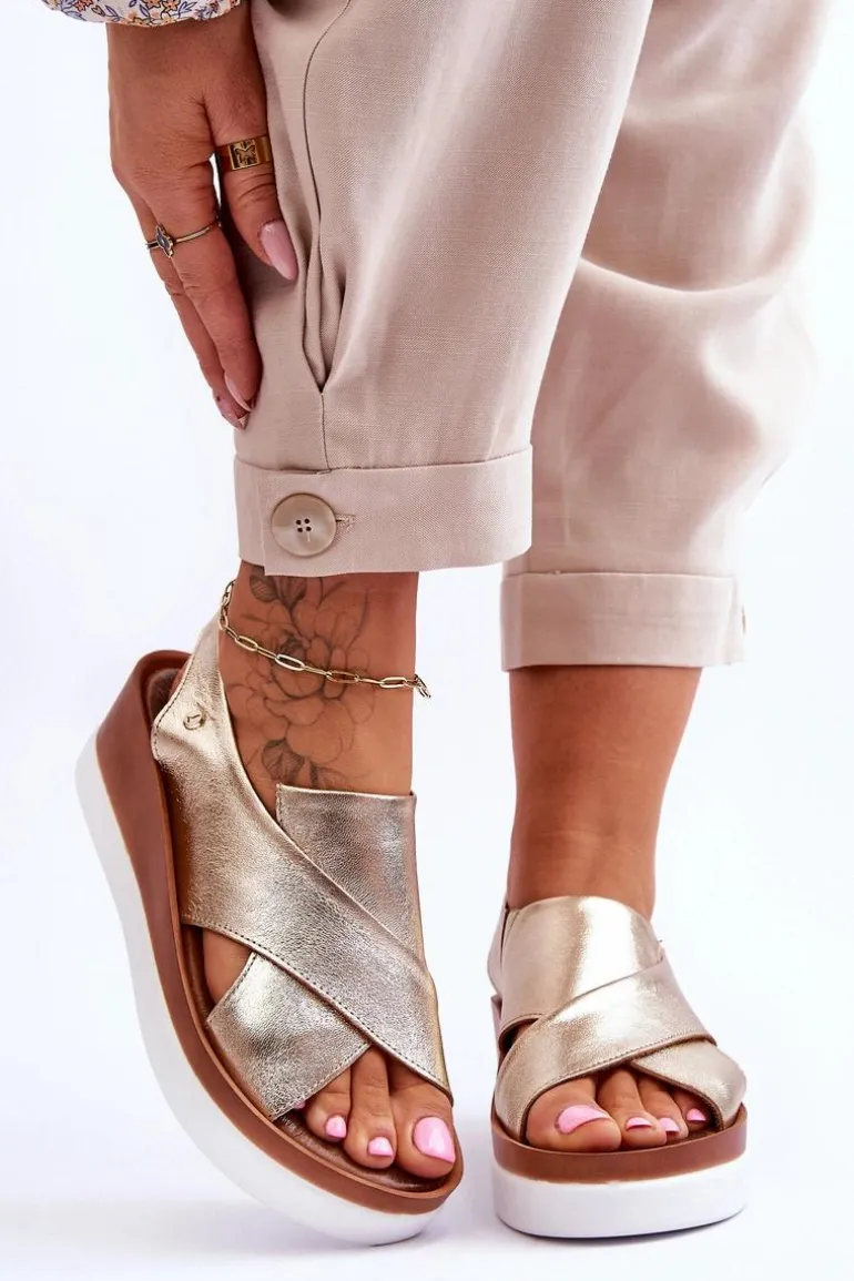 Niezwykle wygodne sandałki damskie zostały wykonane z naturalnej skóry. Model wsuwany, z dodatkowymi gumkami, które dopasują się do tęgości nogi. Model ten posiada ozdobny emblemat z boku cholewki. Sandały osadzono na platformie oraz koturnie. Ten model z pewnością przypadnie Ci do gustu! Przy wyborze rozmiaru prosimy kierować się tabelą rozmiarów.