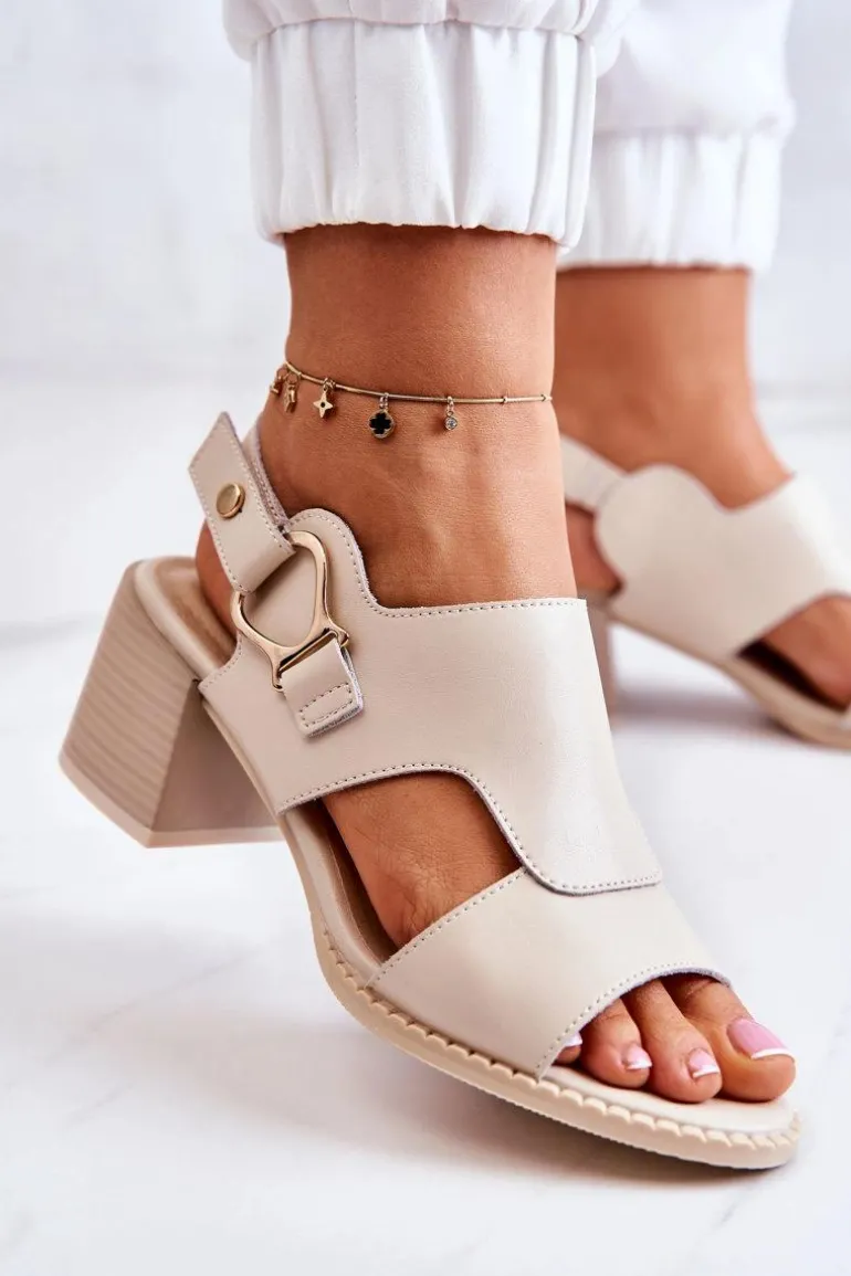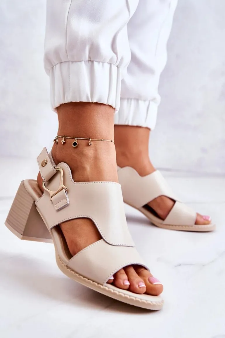 Skórzane Sandały Na Obcasie La.Fi Beżowe Leratto