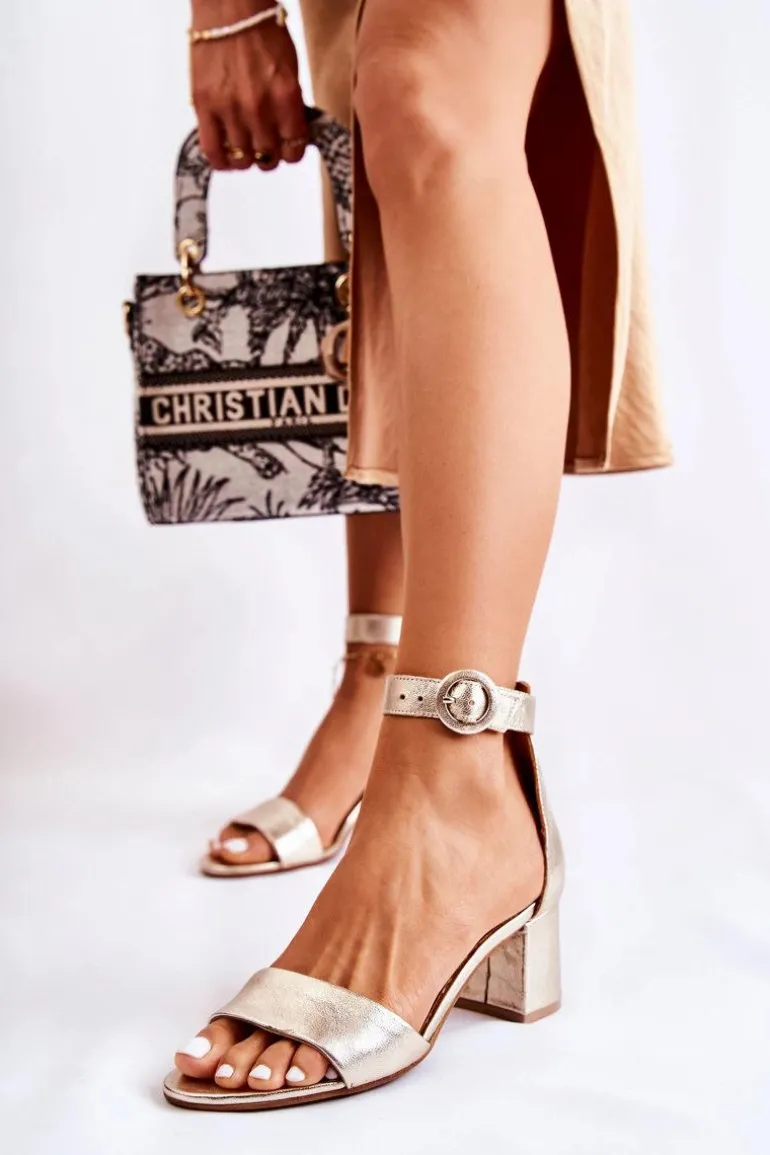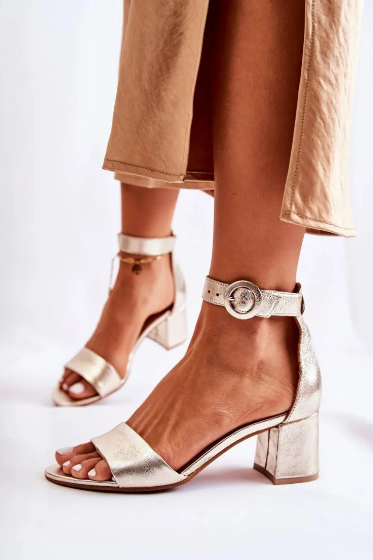 Skórzane Sandały Na Obcasie Maciejka 04141-42 Złote