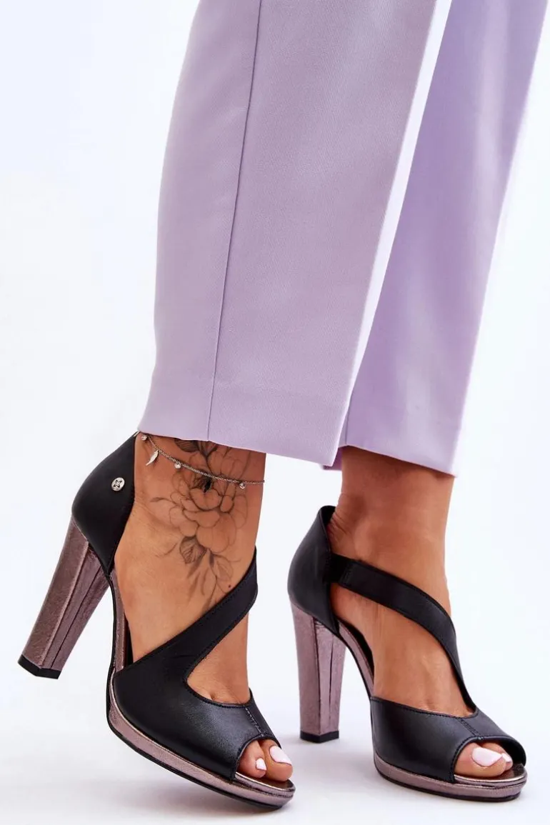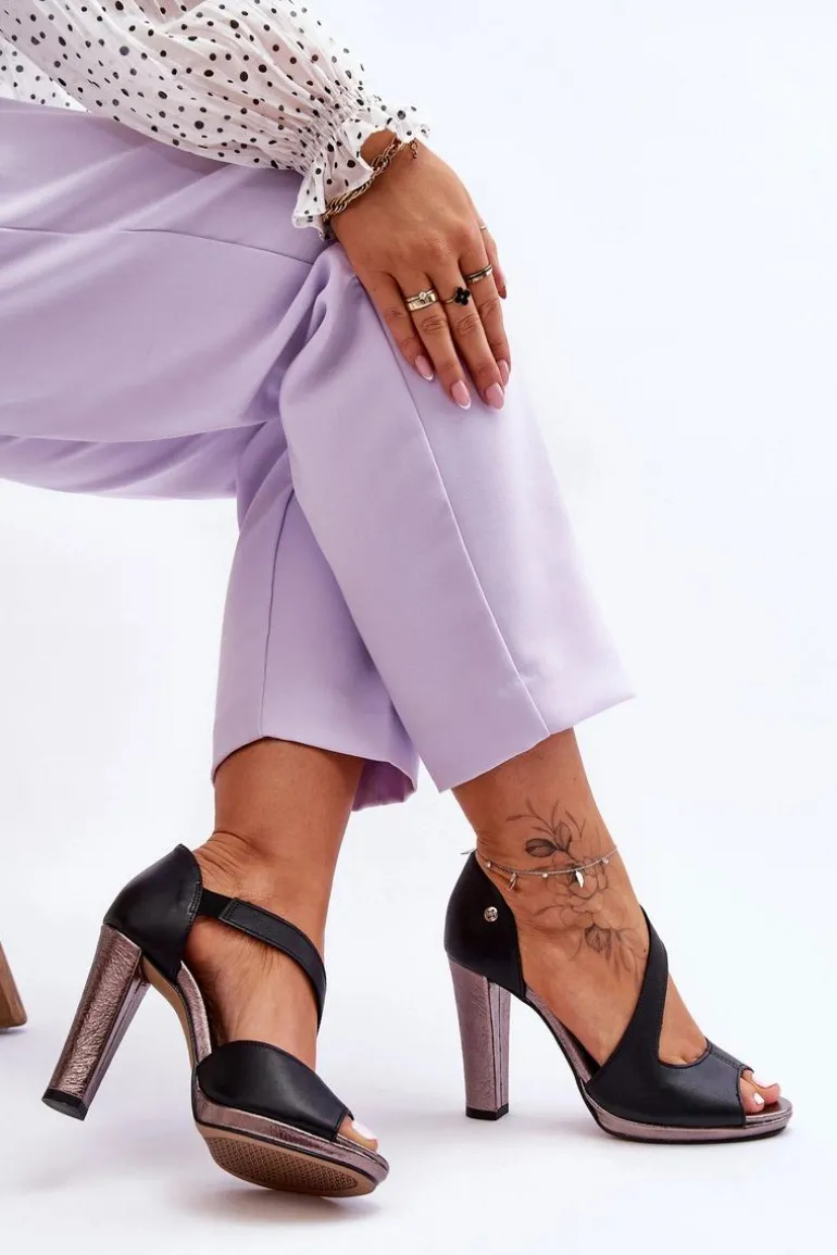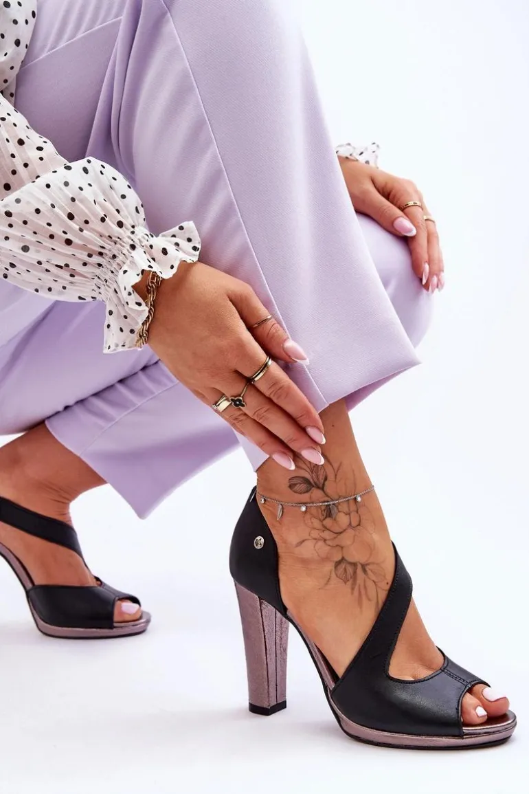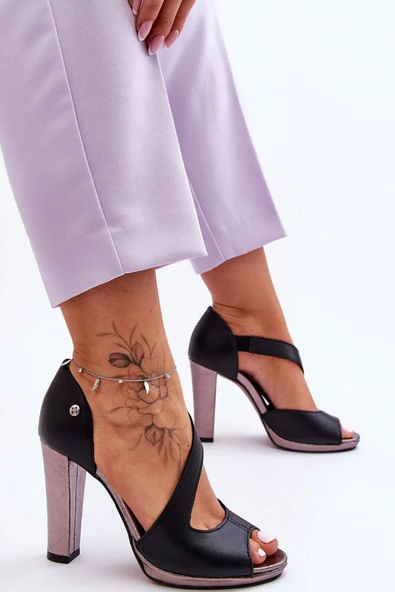 Wyjątkowe sandałki na obcasie w postaci cienkiego słupka i delikatnej platformie. Zostały wykonane ze skóry naturalnej z dbałością o detale. Miękka, skórzana wkładka to gwarancja komfortu podczas użytkowania. Sandałki dodatkowo posiadają usztywniany zapiętek. Model jest wsuwany i posiada paseczek z gumką. Przy wyborze rozmiaru prosimy sugerować się tabelą rozmiarów.