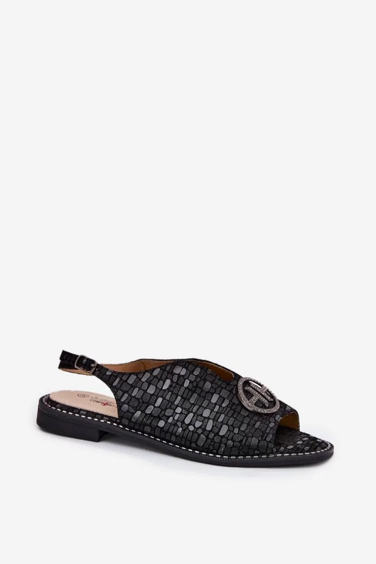 Damskie sandały z naturalnej skóry zamszowej to elegancka propozycja na letnie dni. Osadzone na płaskim obcasie, zapewniają wygodę i komfort przez cały dzień. Zapinane na sprzączkę, pozwalają na idealne dopasowanie do stopy. Z przodu znajduje się subtelna ozdoba, która nadaje im wyjątkowego charakteru. Skórzana wkładka gwarantuje dodatkową wygodę, czyniąc te sandały doskonałym wyborem do eleganckich letnich stylizacji. Przy wyborze rozmiaru prosimy kierować się tabelą rozmiarów.