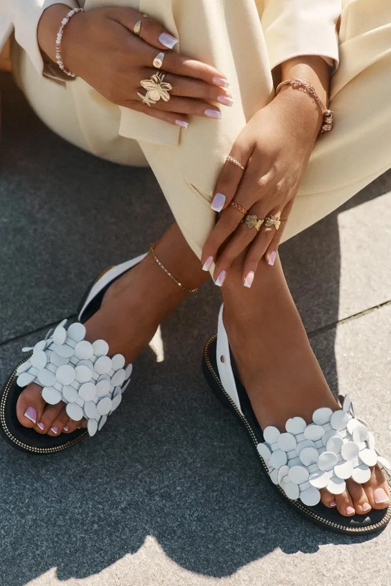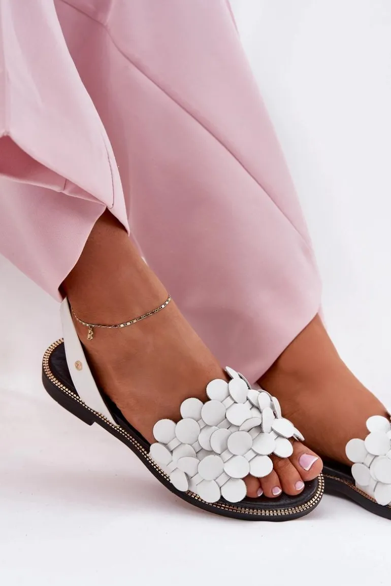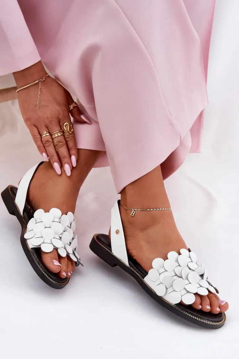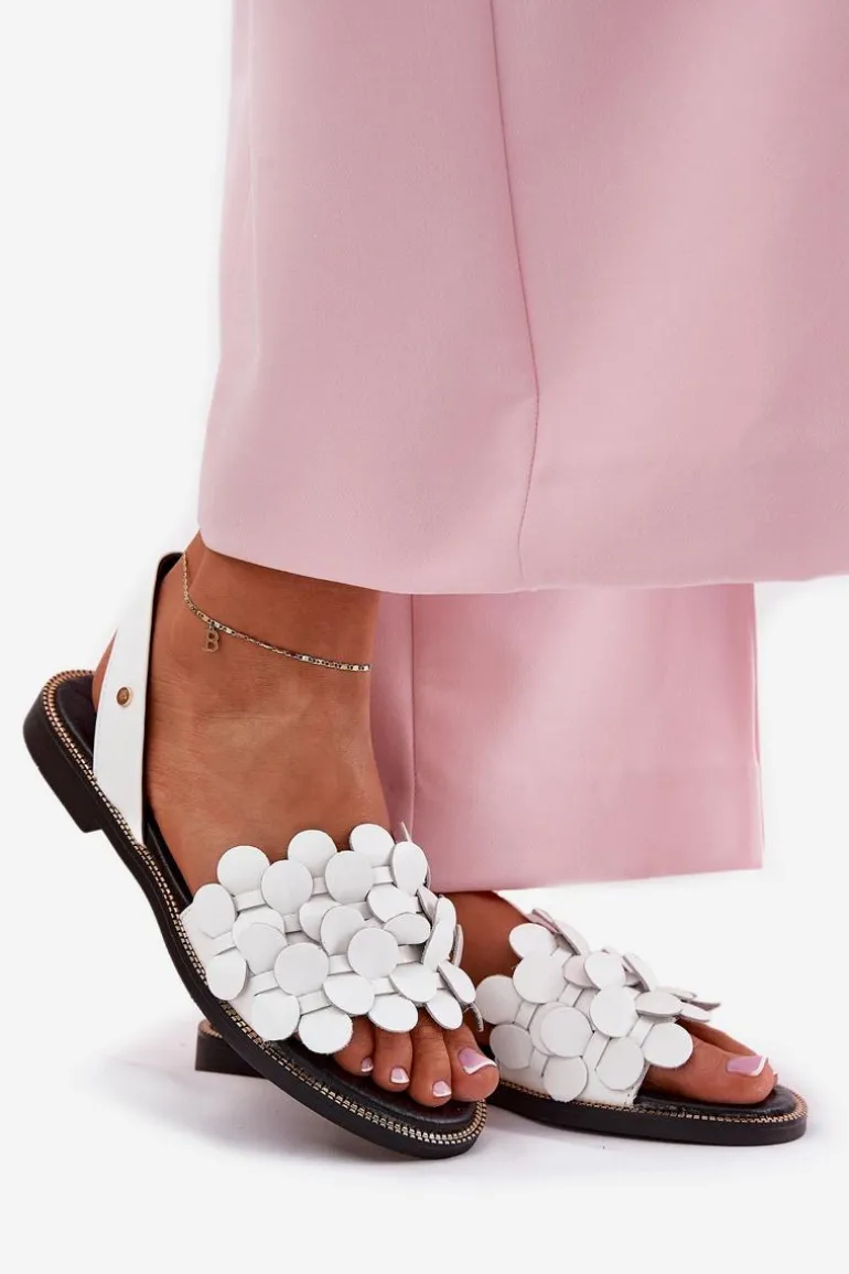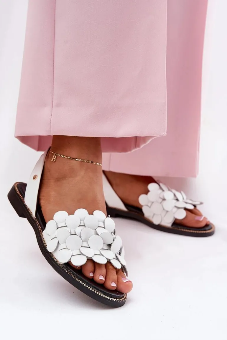 Sandały wykonane z naturalnej skóry to elegancka i wygodna propozycja na ciepłe dni. Osadzone na płaskim obcasie, zapewniają komfort i stabilność przez cały dzień. Z tyłu paseczek na piętę z gumką w środku gwarantuje idealne dopasowanie i wygodę noszenia, umożliwiając swobodny ruch. Te sandały to doskonały wybór na upale dni! Przy wyborze rozmiaru prosimy kierować się tabelą rozmiarów.