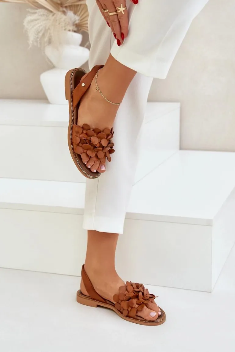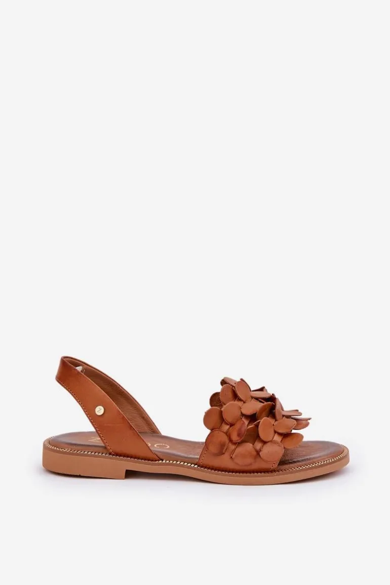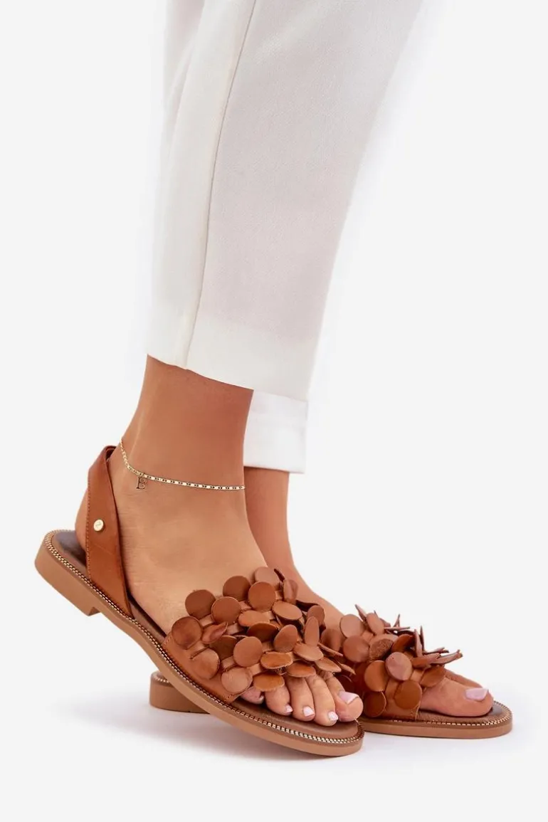 Skórzane Sandały Na Płaskim Obcasie Zazoo 40425 Brązowe