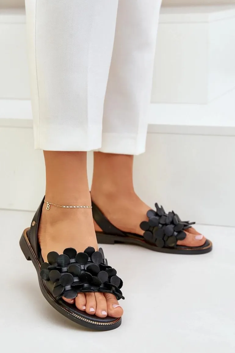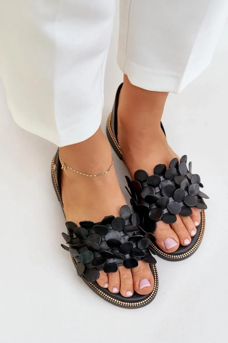 Sandały wykonane z naturalnej skóry to elegancka i wygodna propozycja na ciepłe dni. Osadzone na płaskim obcasie, zapewniają komfort i stabilność przez cały dzień. Z tyłu paseczek na piętę z gumką w środku gwarantuje idealne dopasowanie i wygodę noszenia, umożliwiając swobodny ruch. Te sandały to doskonały wybór na upale dni! Przy wyborze rozmiaru prosimy kierować się tabelą rozmiarów.
