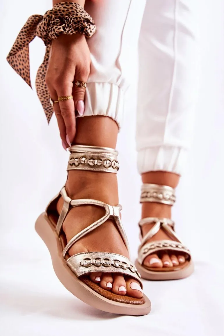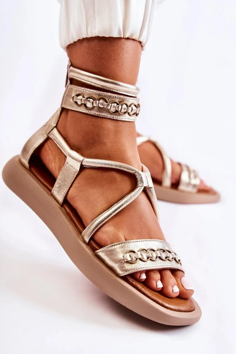 Skórzane Sandały Na Platformie Maciejka 05559-25 Złote