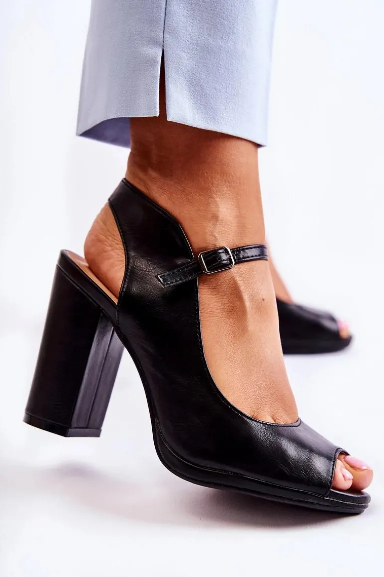 Klasyczne sandały zostały osadzone na obcasie w postaci słupka. Posiadają regulowany pasek zapinany na sprzączkę. Buty świetnie sprawdzą się w wielu stylizacjach. Wykonane z eko skóry zarówno na zewnątrz, jak i w środku. O komfort zadba miękka wkładka, która jest bardzo wygodna podczas użytkowania. Nosek odkryty i zaokrąglony. Przy wyborze rozmiaru prosimy sugerować się tabelą rozmiarów.