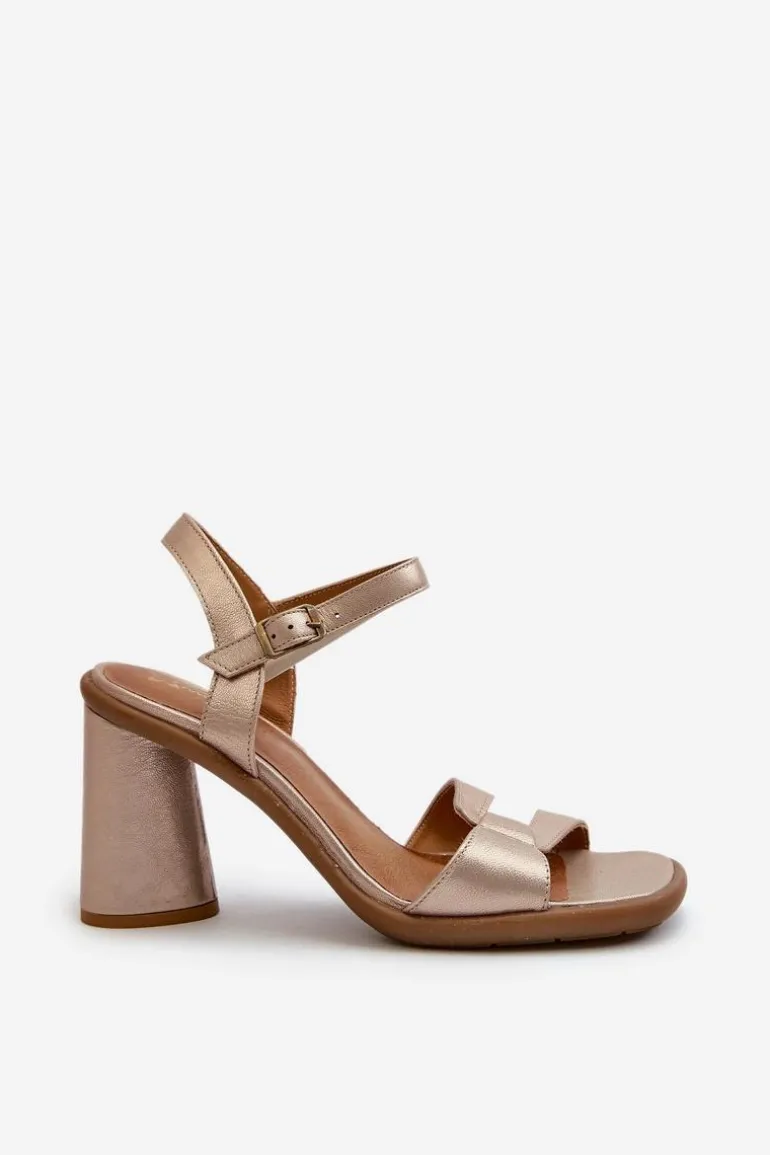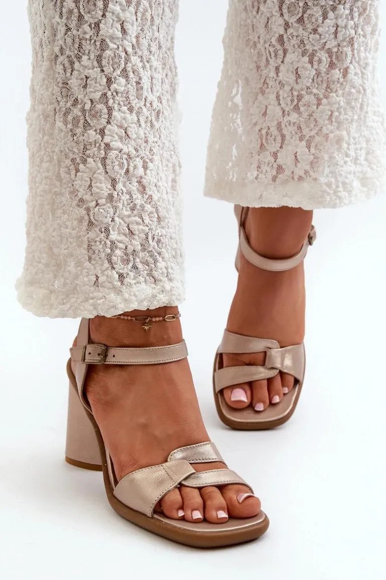 Modne, damskie sandały zostały wykonane z naturalnej skóry. Model ten posiada miękką wkładkę, która jest niezwykle wygodna podczas użytkowania. Sandałki osadzono obcasie w postaci trójkątnego słupka. Są zapinane na regulowany pasek ze sprzączką. Idealne obuwie na różnego rodzaju uroczystości czy ważne spotkania w letnie dni! Przy wyborze rozmiaru prosimy sugerować się tabelą rozmiarów.