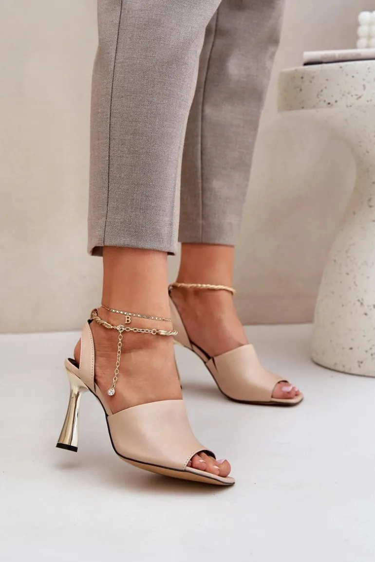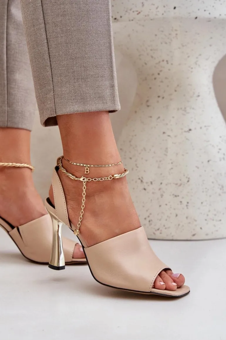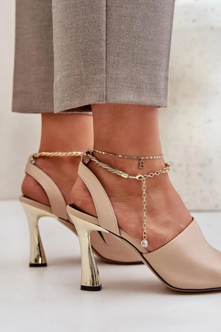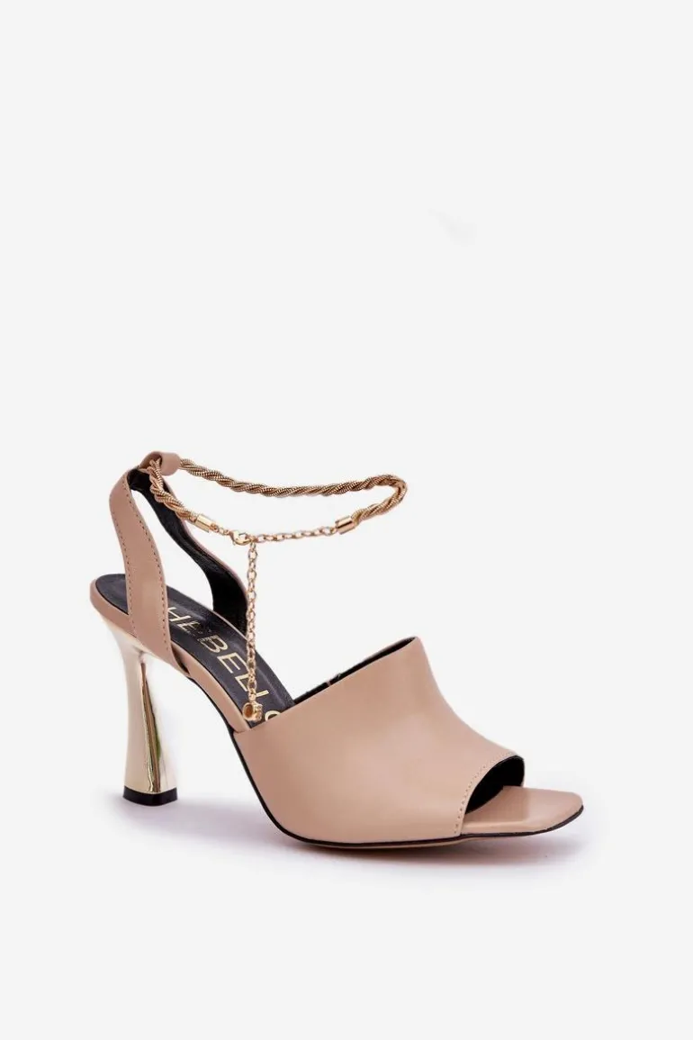 Sandały damskie od marki CheBello wykonane z wysokiej jakości naturalnej skóry. Osadzone na smukłej szpilce, z subtelną bransoletą wokół kostki, dodającą elegancji i szyku. Idealne na wyjątkowe okazje oraz wieczorne wyjścia, łączą w sobie styl, klasę i komfort noszenia. Przy wyborze rozmiaru prosimy sugerować się tabelą rozmiarów.