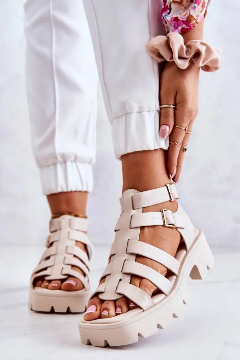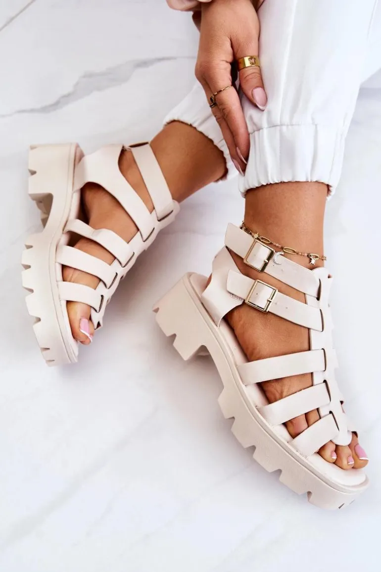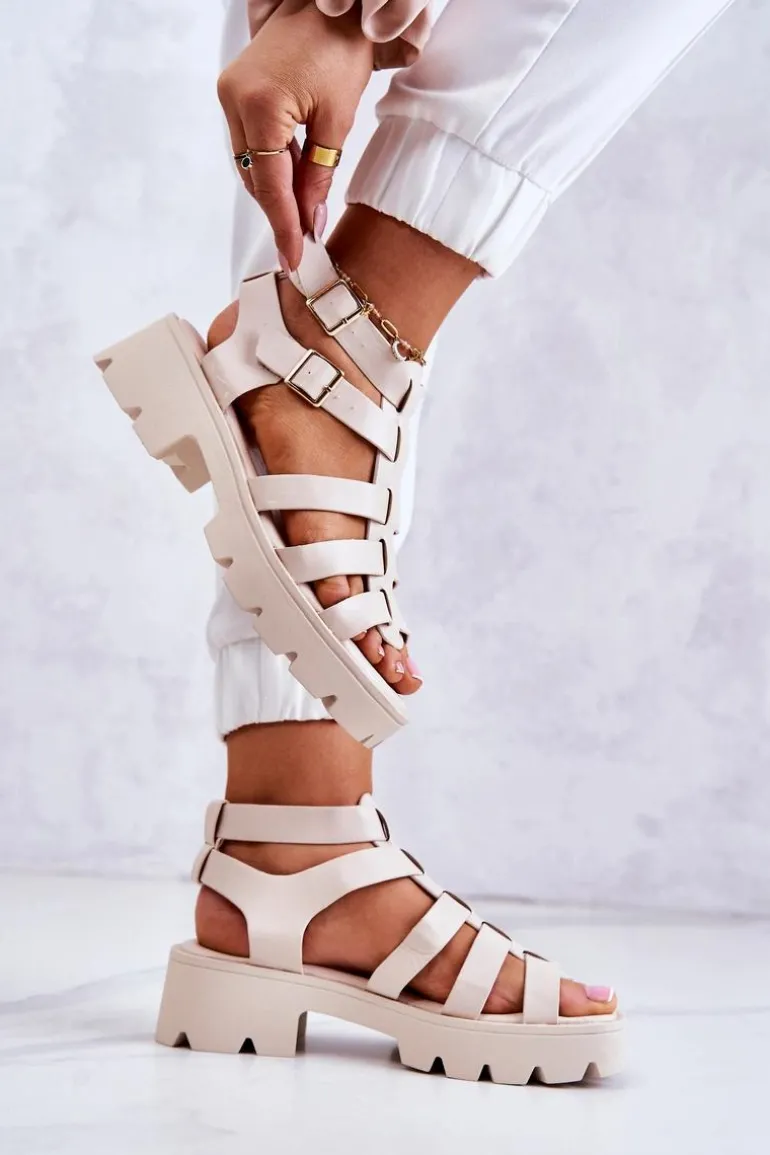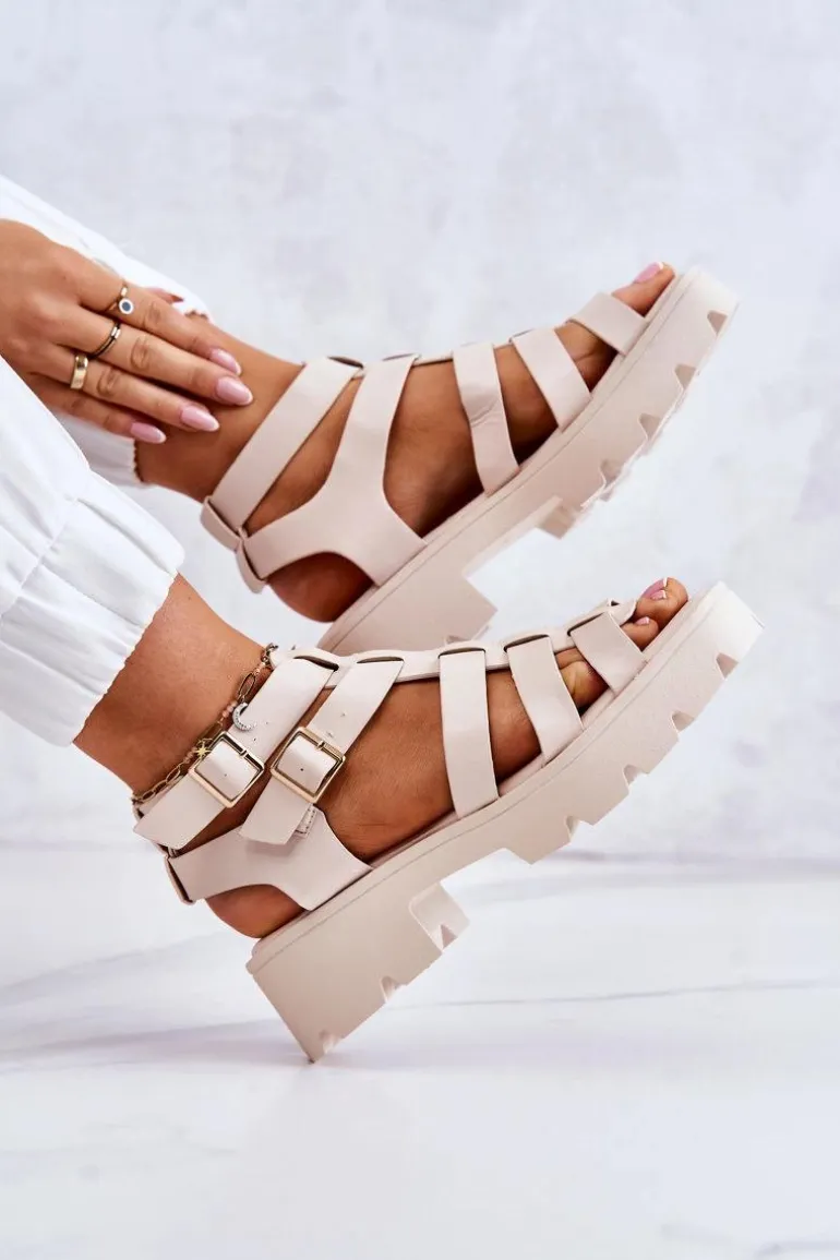 Skórzane Sandały Z Paseczkami Beżowe Minorite