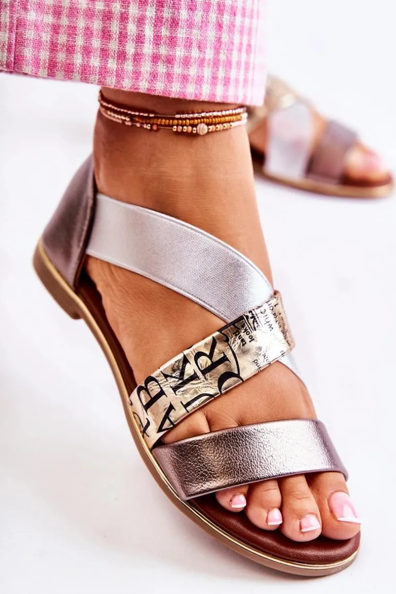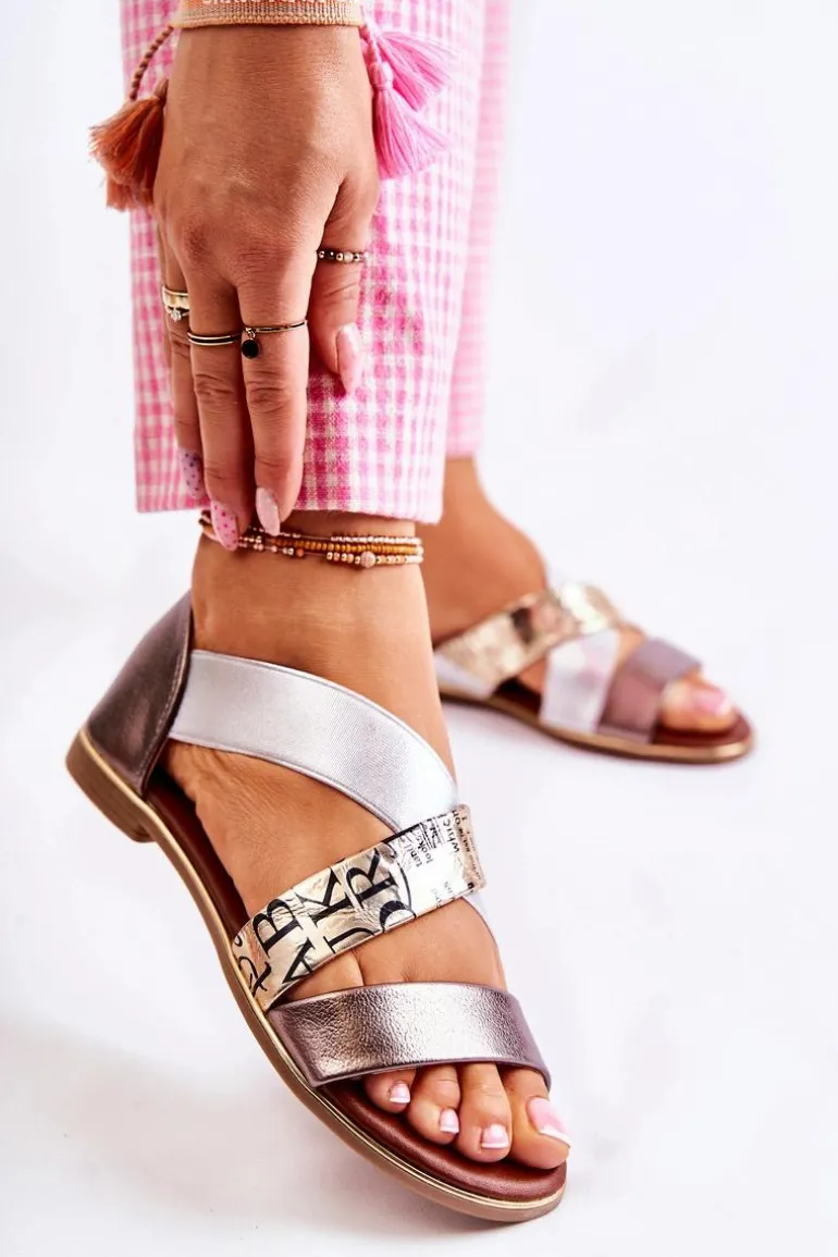 Skórzane Sandały Ze Ściągaczem Złote Apulia