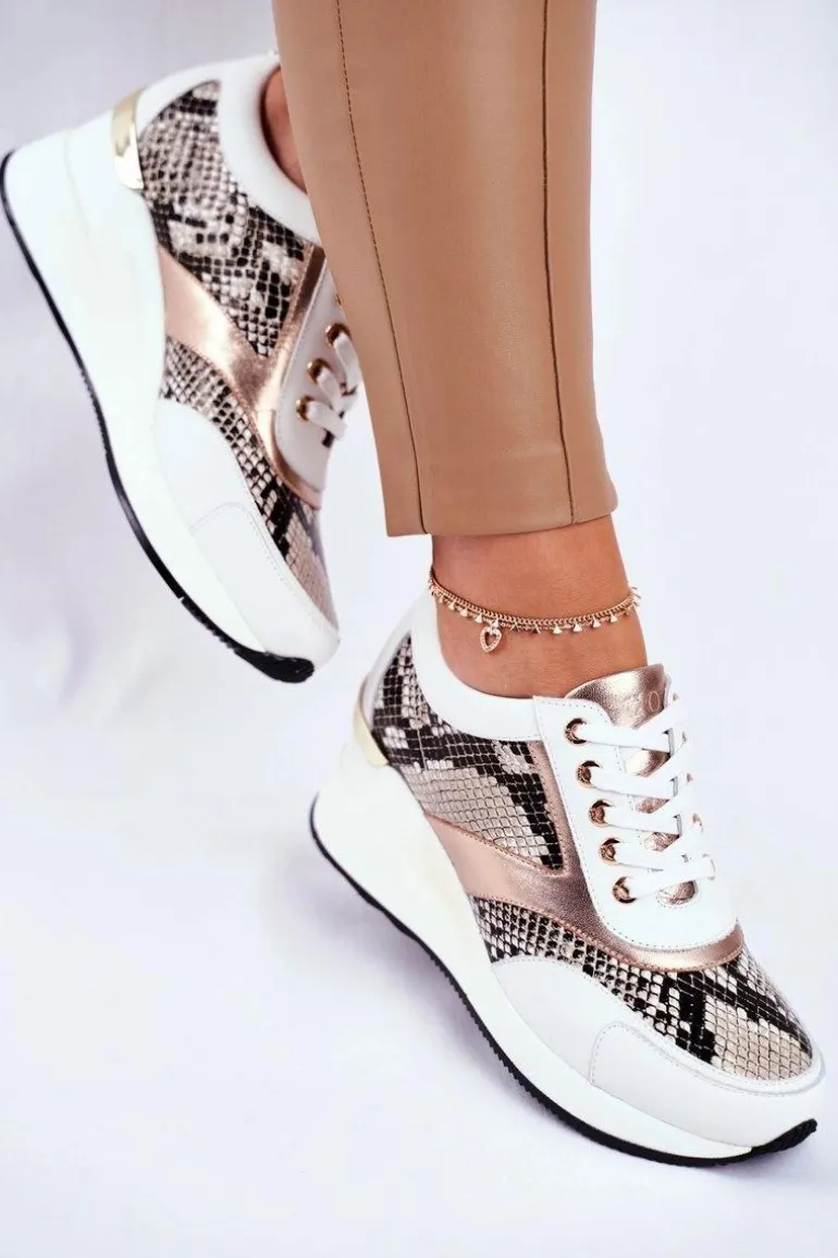 Sneakersy na koturnie marki GOE. Buty wykonane są w całości ze skóry naturalnej. Przy wyborze rozmiaru prosimy kierować się tabelą rozmiarów.