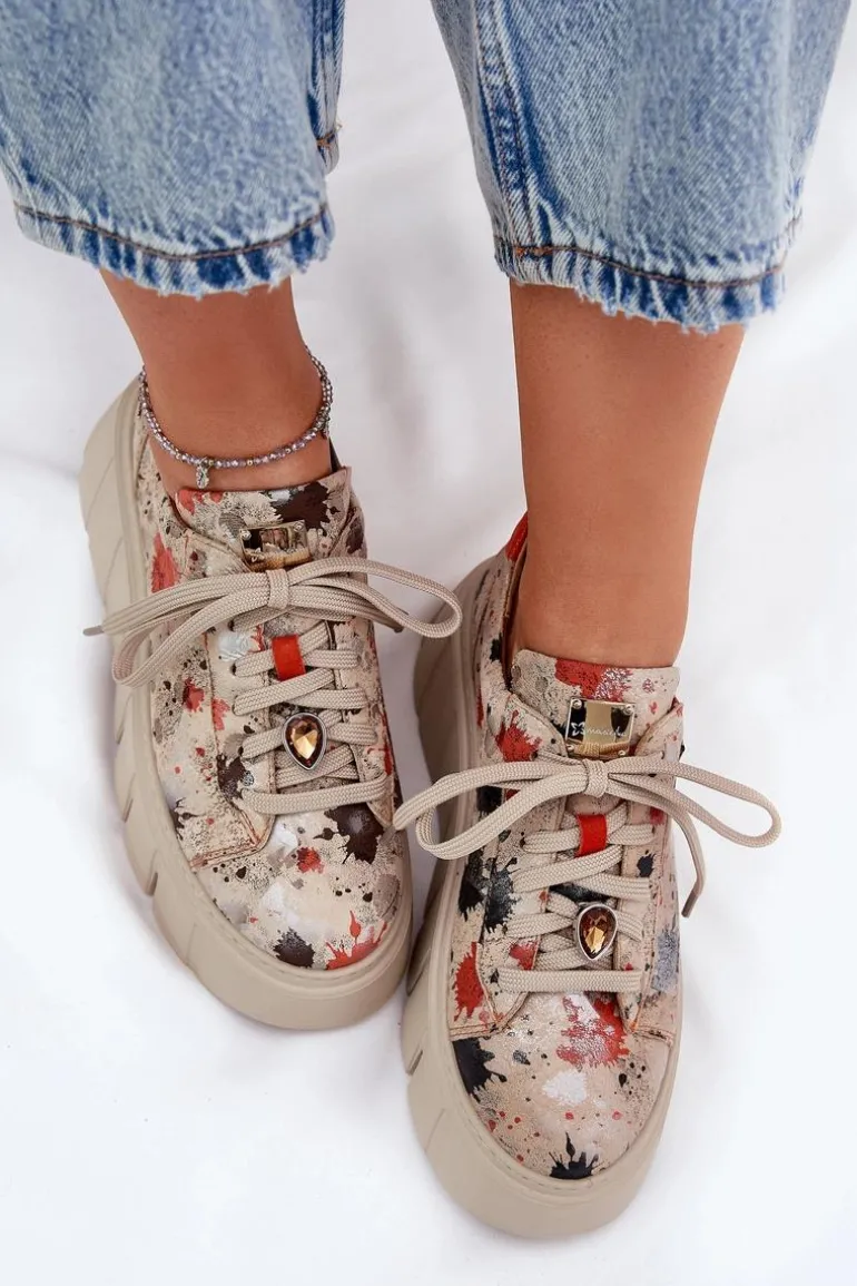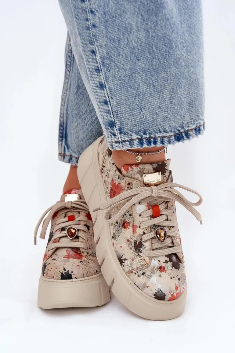Skórzane Sneakersy Na Platformie Maciejka 06891-18 Beżowe