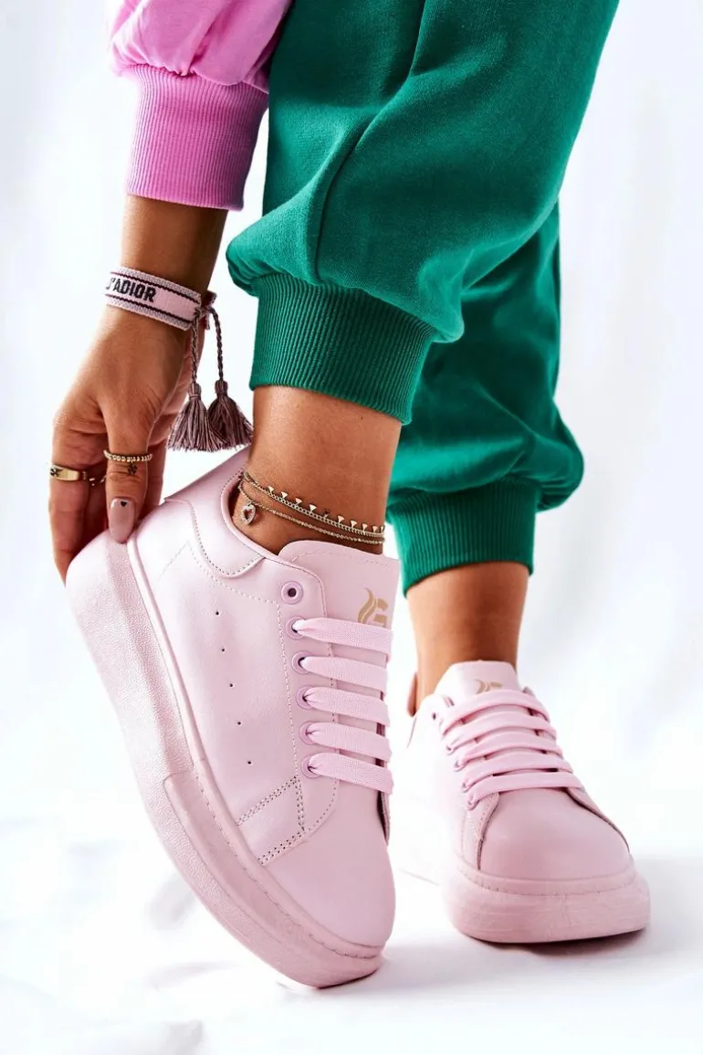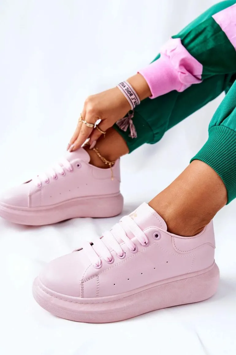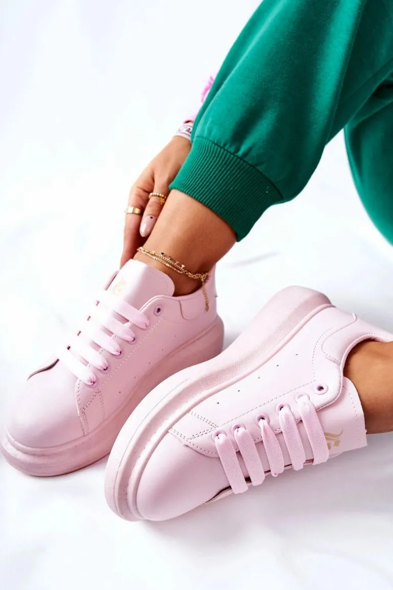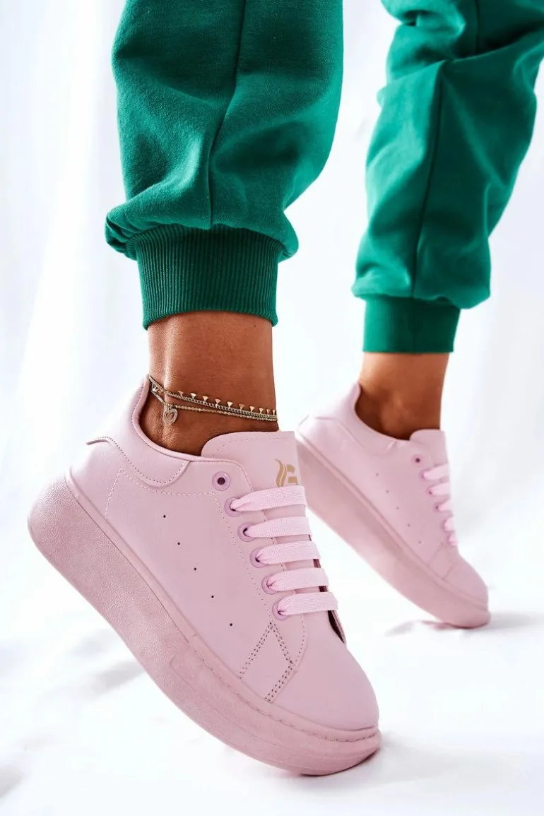Modne buty sportowe zostały wykonane z eko skóry. Posiadają wysoką platformę. Na języku widnieje ozdobne logo. Sznurówki w kolorze obuwia. Sportowe buty to MUST HAVE każdej osoby ceniącej sobie komfort i wygodę. Nie czekaj aż znikną i kup je już dziś! Nie przegap takiej okazji! Przy wyborze rozmiaru prosimy kierować się tabelą rozmiarów.