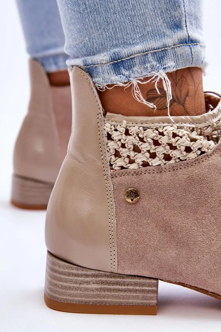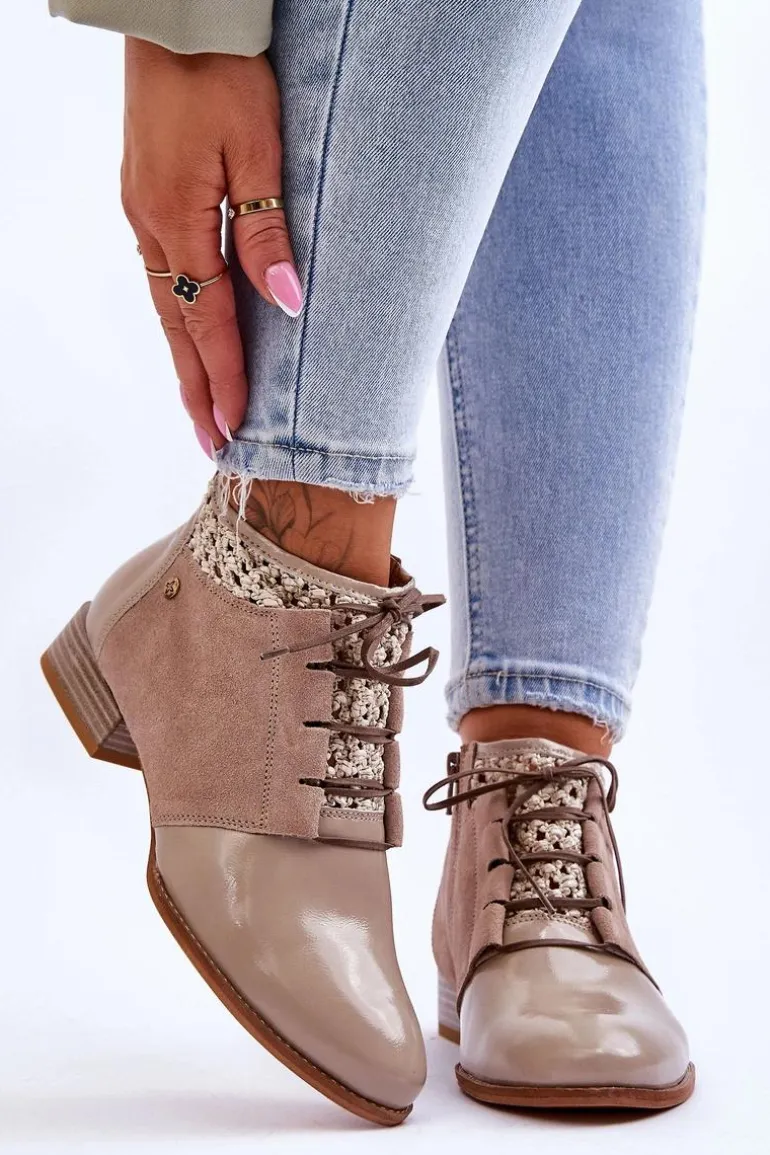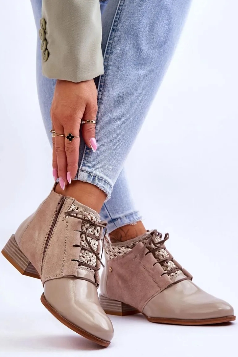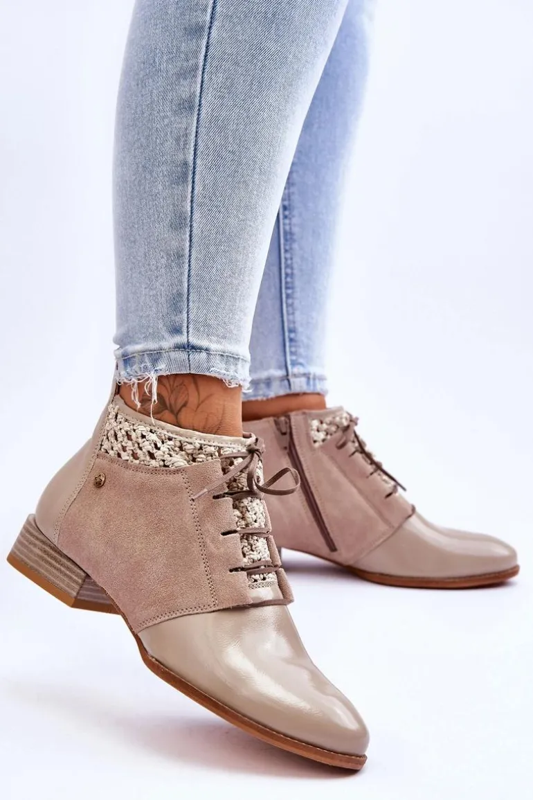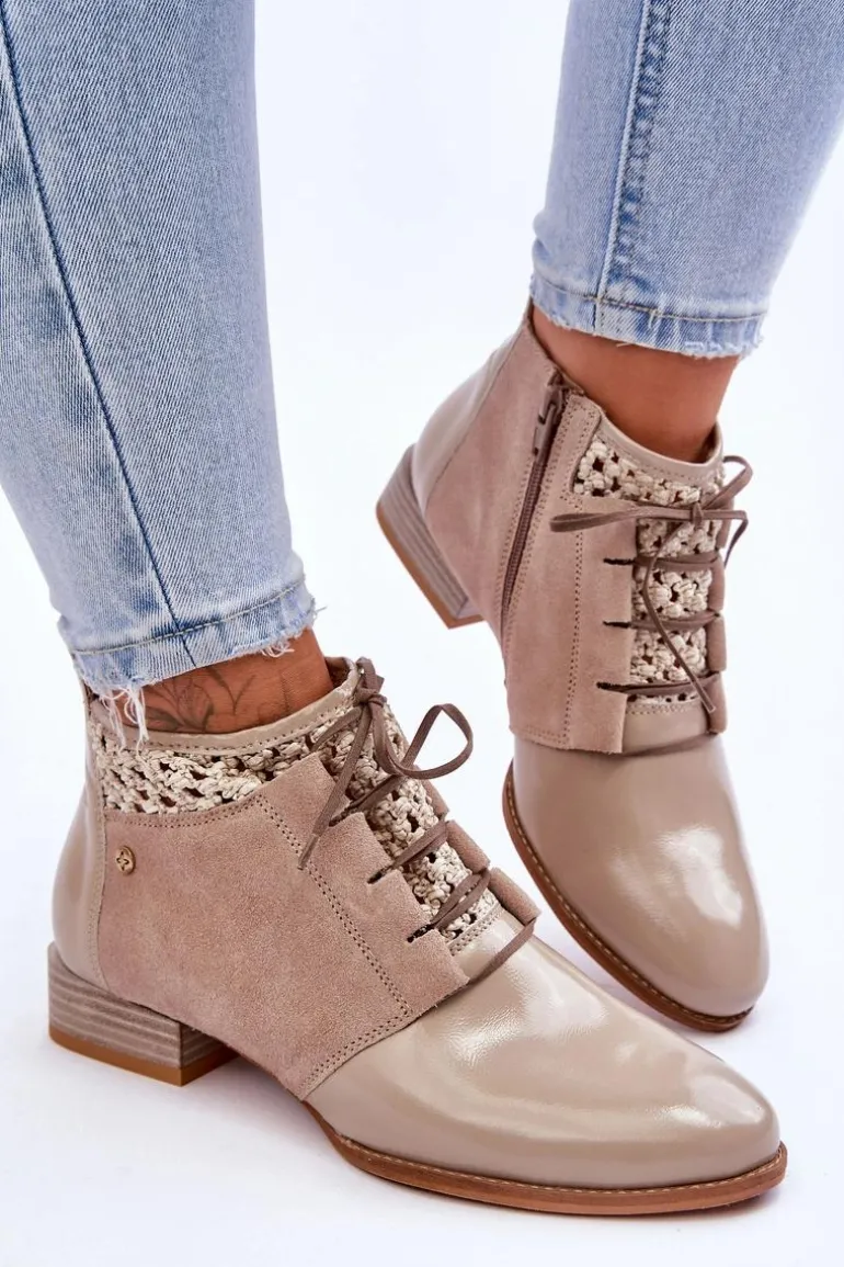 Skórzane Sznurowane Botki Maciejka 05953-04 Beżowe