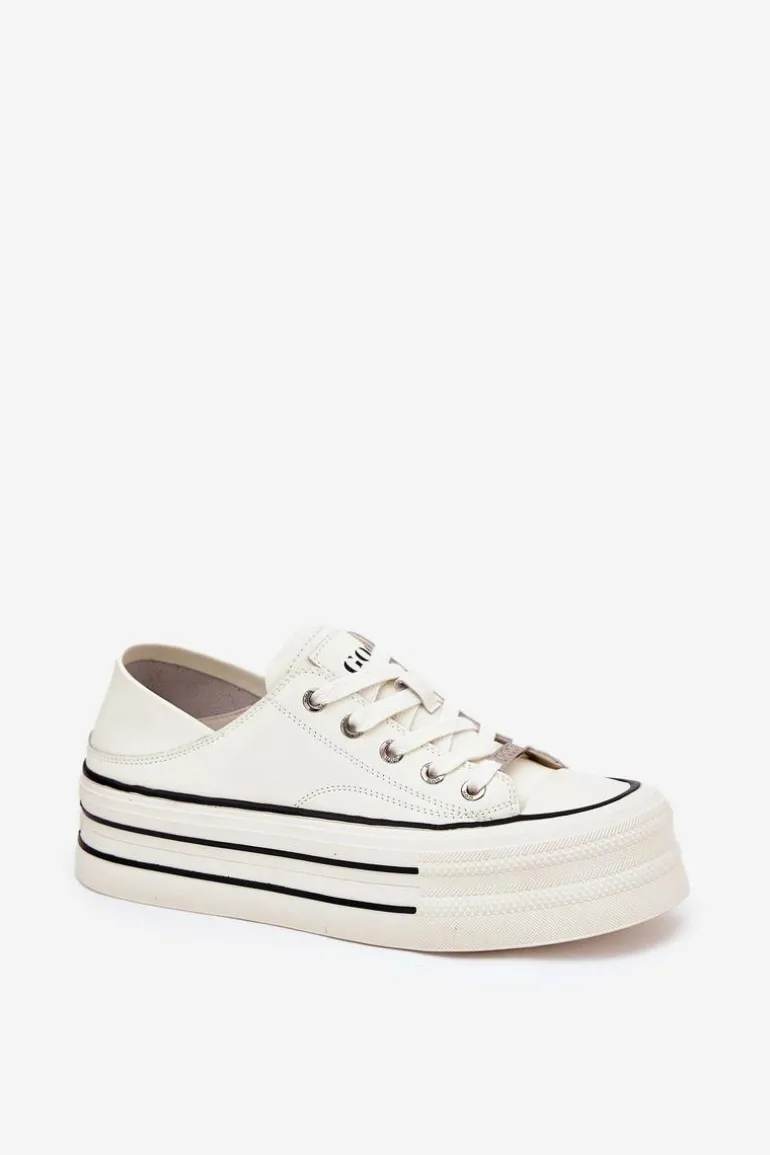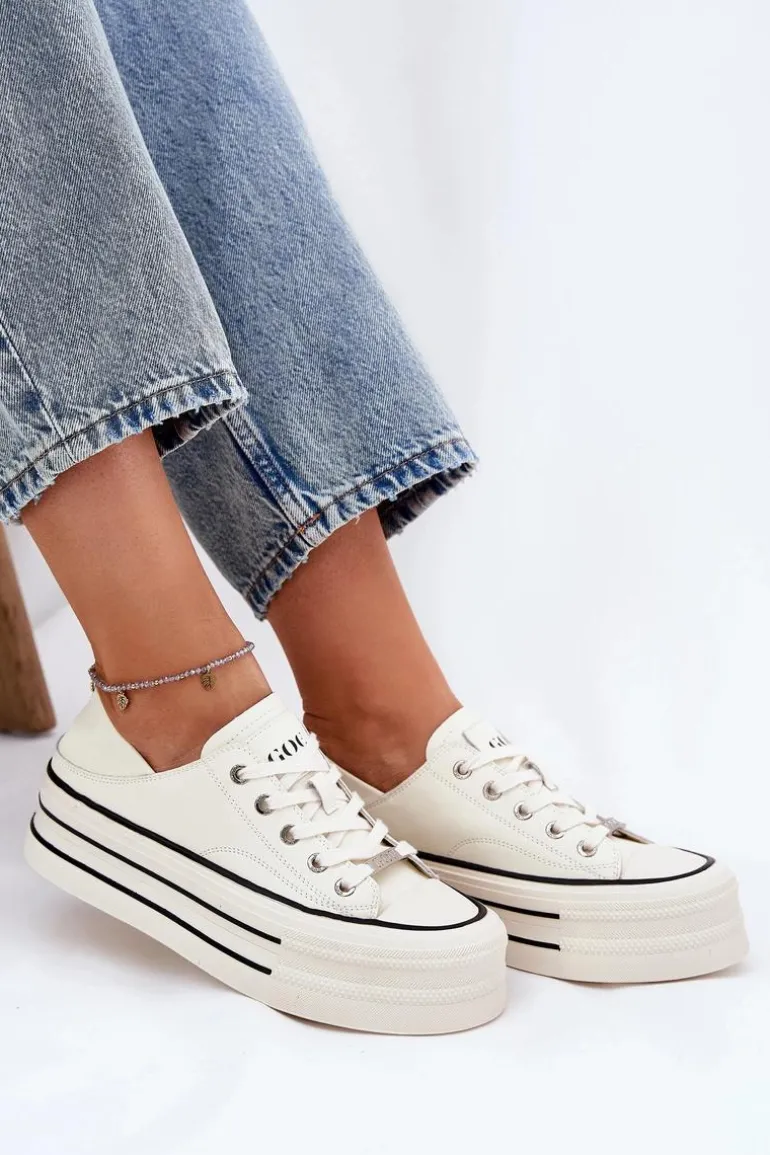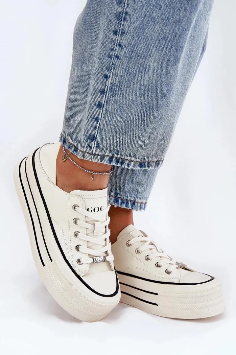 Trampki damskie od marki GOE. Wykonane z wysokiej jakości skóry naturalnej. Osadzone na masywnej platformie, zapewniają komfort i stabilność, jednocześnie dodając lekkości sylwetce. Miękka wkładka dba o komfort przez cały dzień. Te trampki to doskonały wybór do codziennych stylizacji! Przy wyborze rozmiaru prosimy sugerować się tabelą rozmiarów.