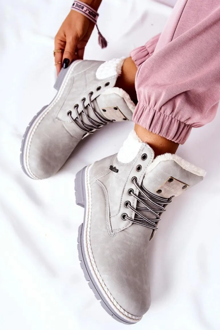 Wyjątkowe botki trapery zostały wykonane z eko skóry. Posiadają wiązanie. Z boku znajduje się ozdobny emblemat. U góry cholewki, jak i wewnątrz botki posiadają ocieplenie w postaci futerka. Świetnie sprawdzą się podczas wycieczek w jesienno-zimowe dni. Nie powinni zabraknąć ich w Twojej garderobie! Nie czekaj i kup już dziś! Przy wyborze rozmiaru prosimy sugerować się tabelą rozmiarów.