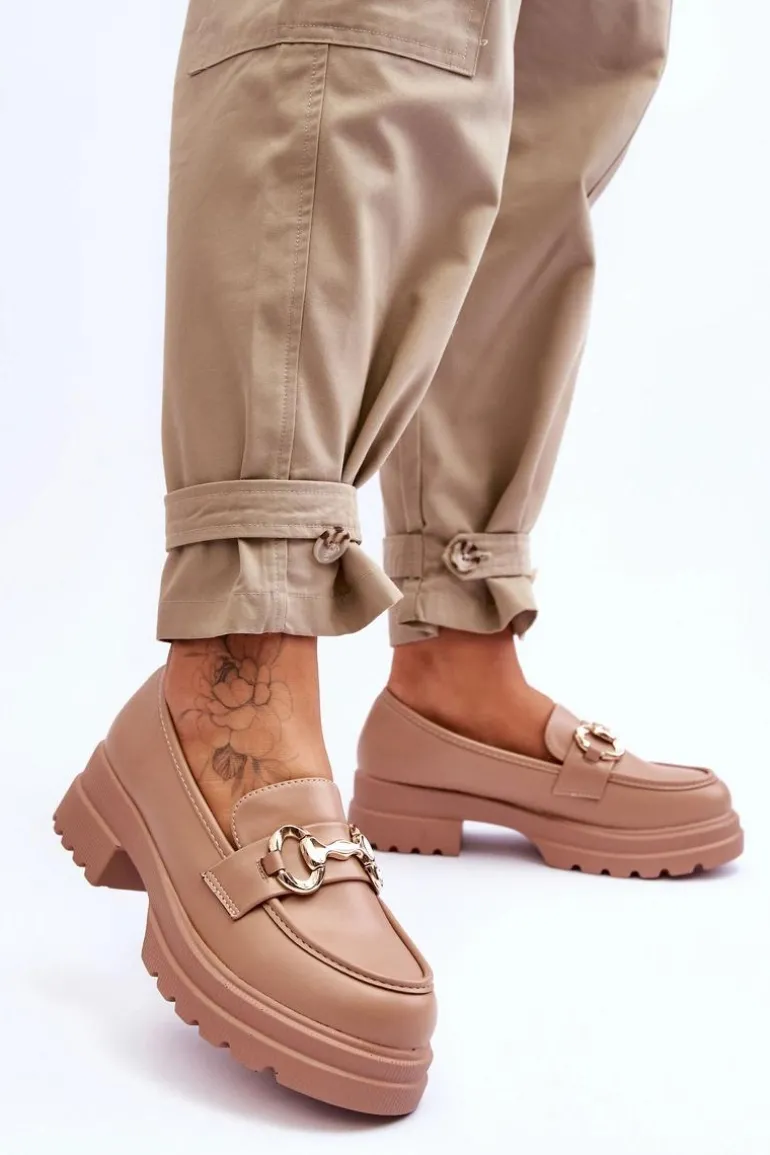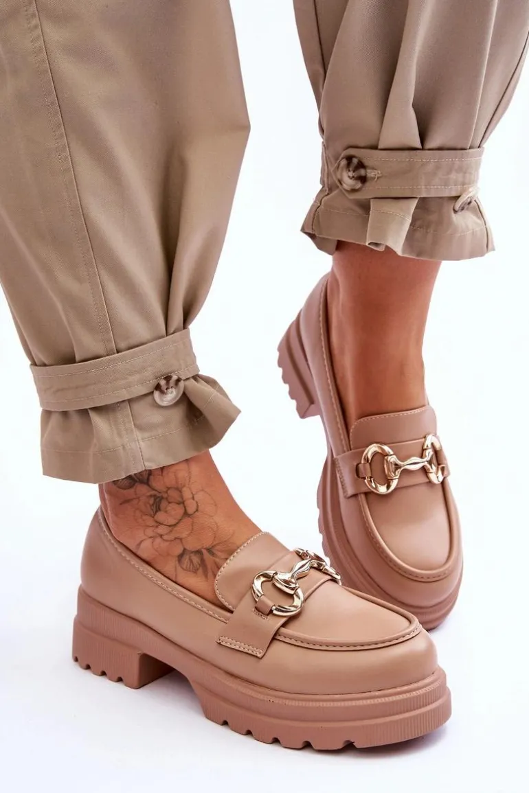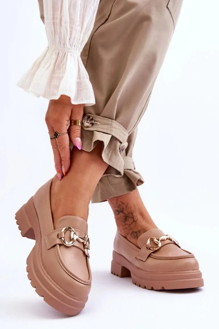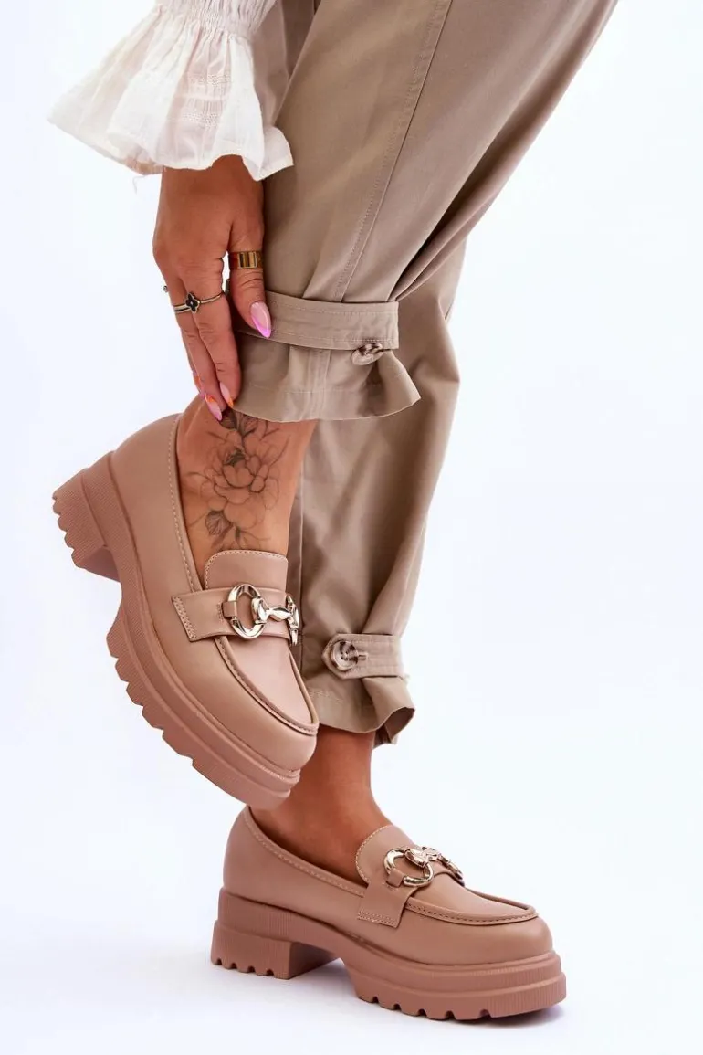 Klasyczne, damskie mokasyny, które świetnie sprawdzą się w wielu stylizacjach! Zostały osadzone na płaskim obcasie i platformie. Posiadają z przodu ozdobę z tworzywa sztucznego. Model ten został wykonany z eko skóry. Zapiętek w tych butach jest delikatnie usztywniany. Z pewnością wykorzystasz je w sezonie wiosenno-jesiennym! Przy wyborze rozmiaru prosimy sugerować się tabelą rozmiarów.