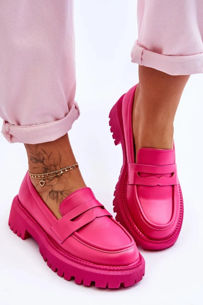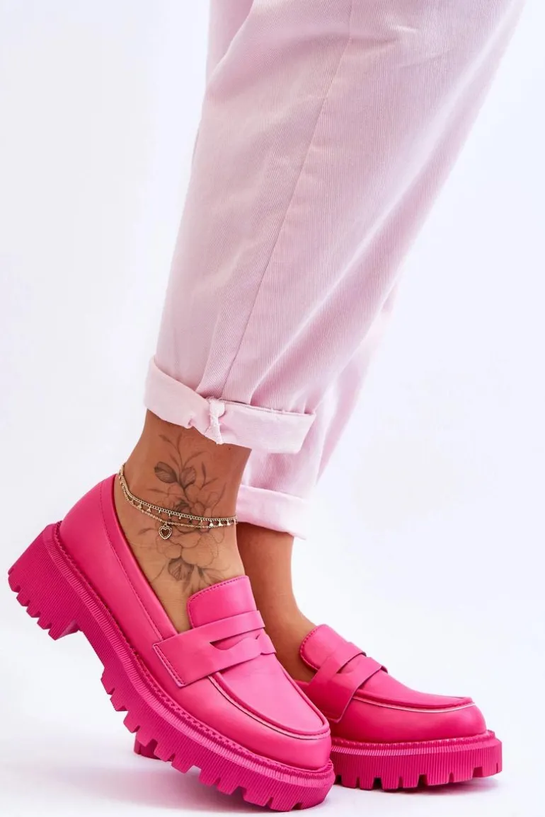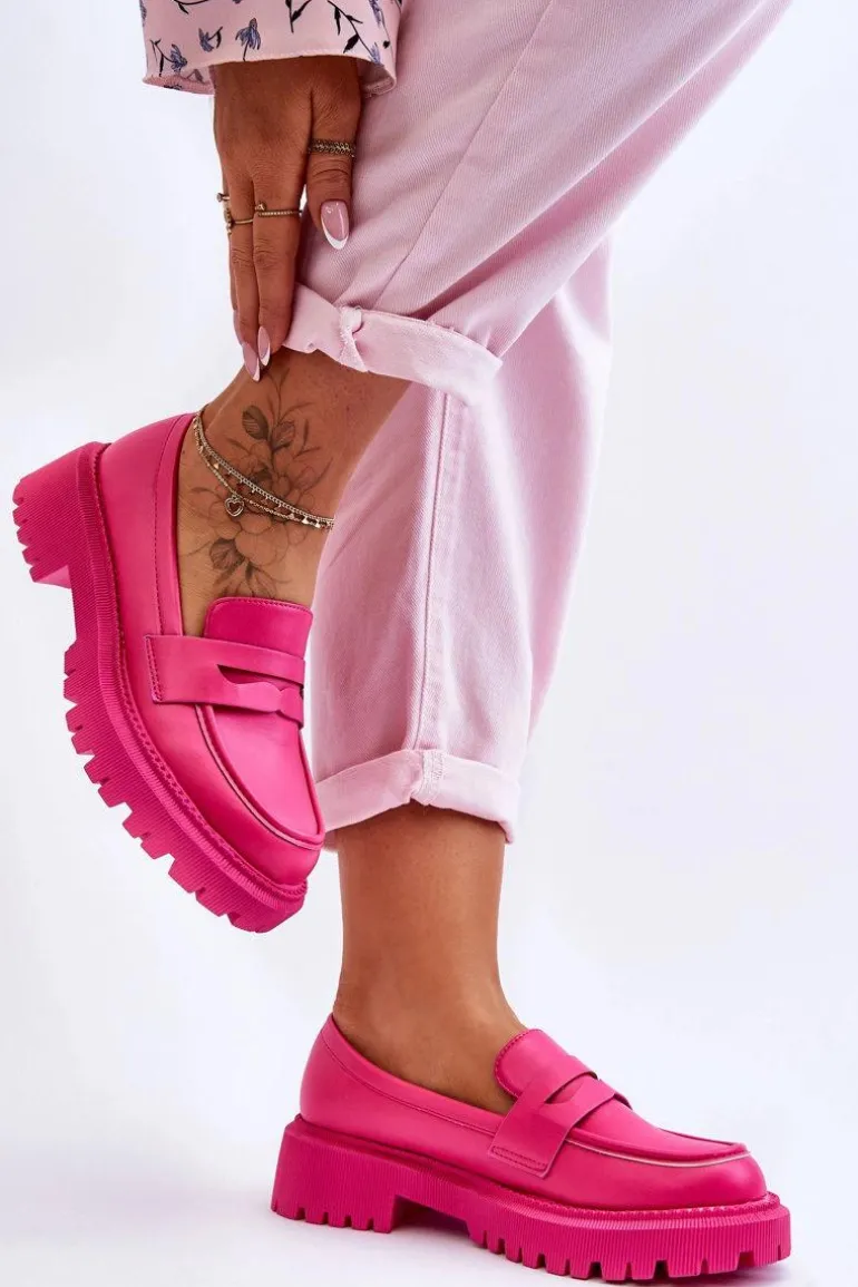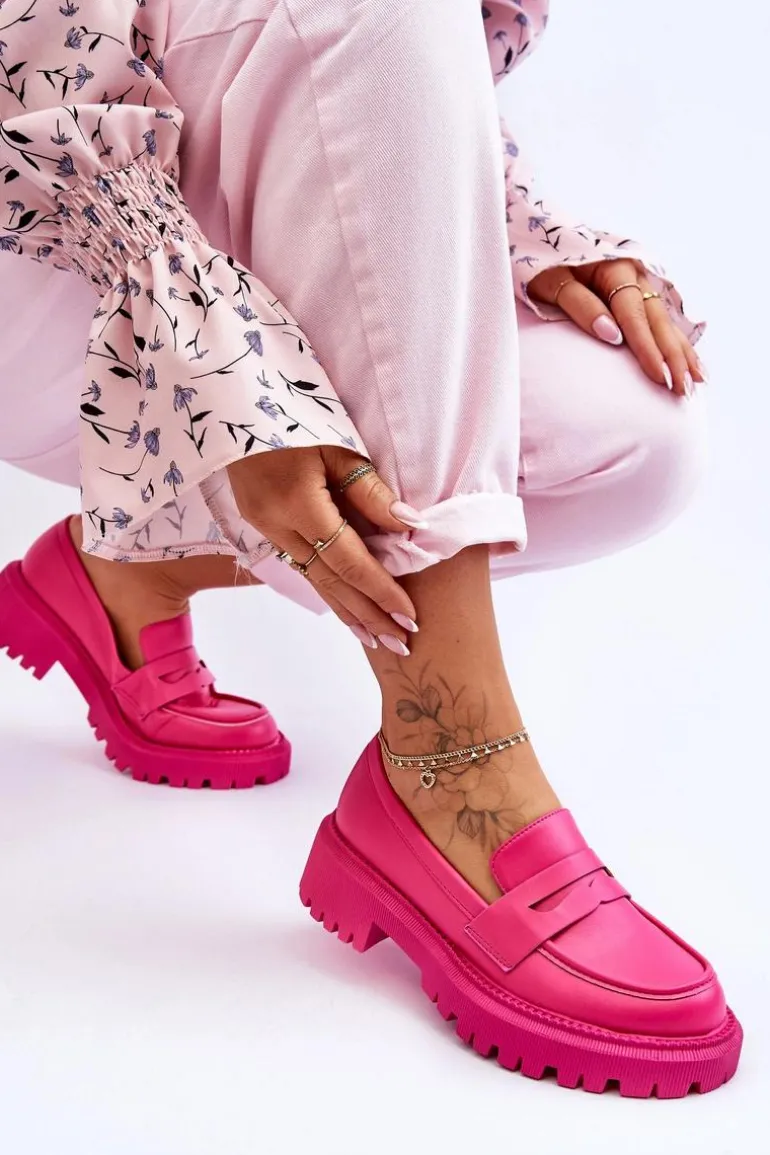Wygodne, damskie mokasyny zostały wykonane z eko skóry. Model ten posiada na przodzie paseczek z delikatnym wycięciem. Mokasyny osadzono na płaskim, masywnym obcasie oraz platformie. Zapiętek został delikatnie usztywniony. Świetny model do wielu stylizacji w sezonie wiosenno-jesiennym. Przy wyborze rozmiaru prosimy sugerować się tabelą rozmiarów.