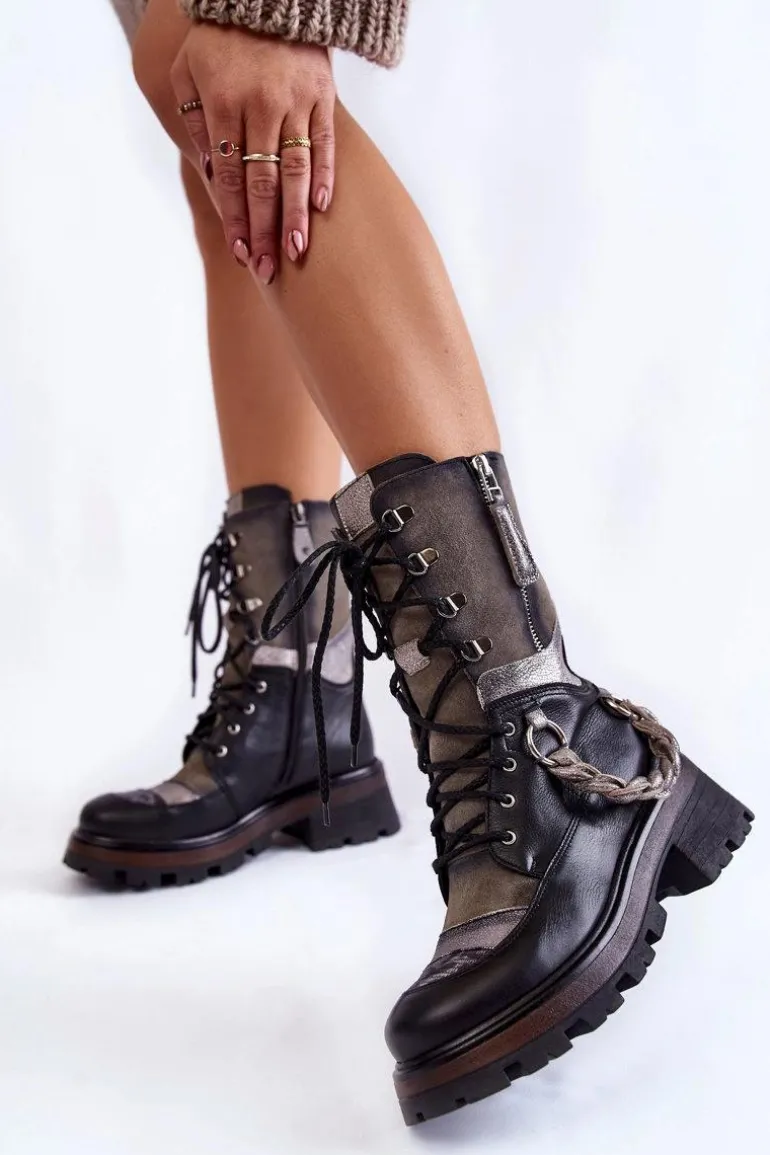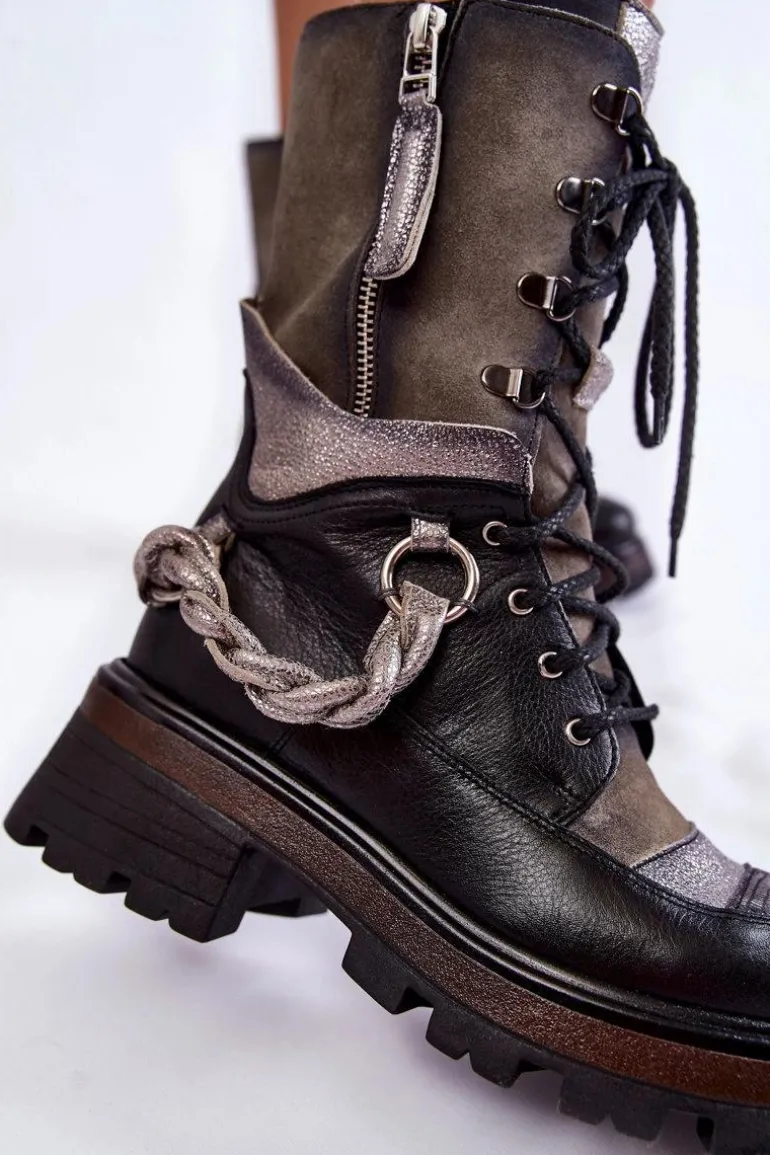 Skórzane Wysokie Botki Workery Maciejka 05586-01 Czarno-Szare