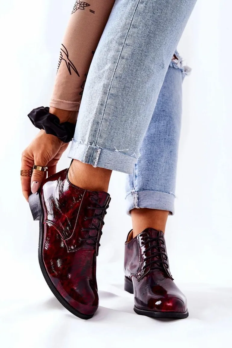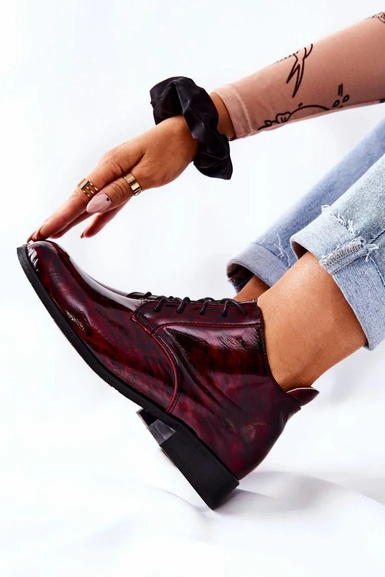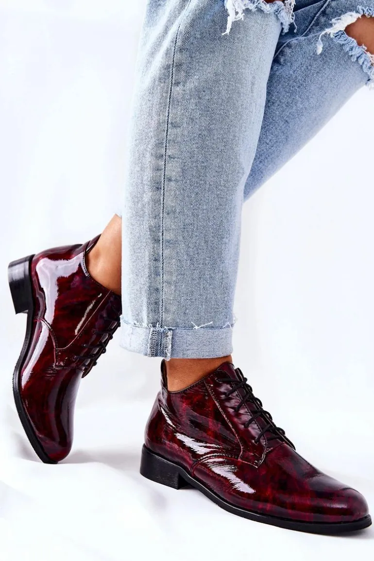 Skórzane Wysokie Półbuty Bordowo-Czarne Maniz