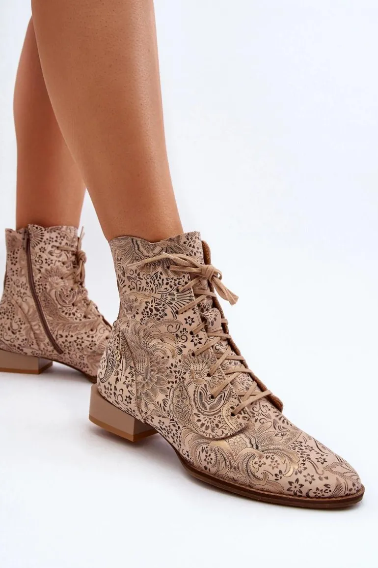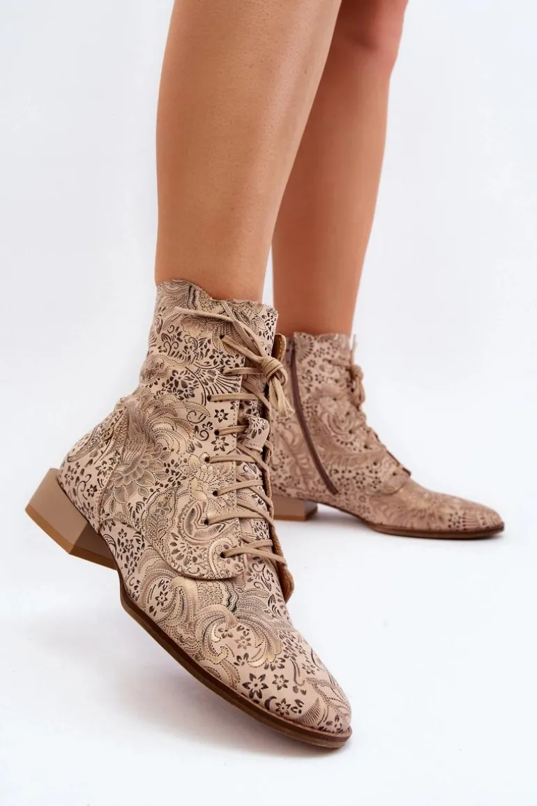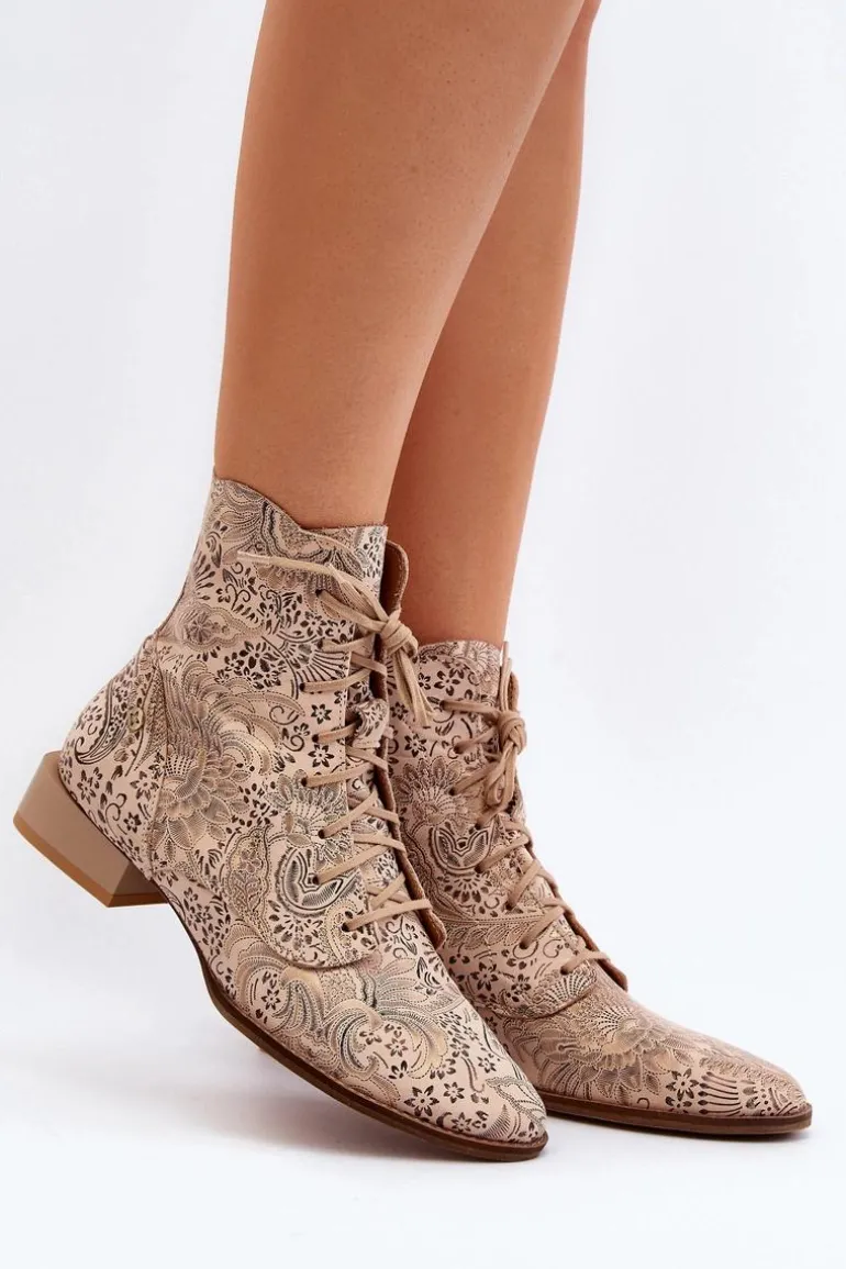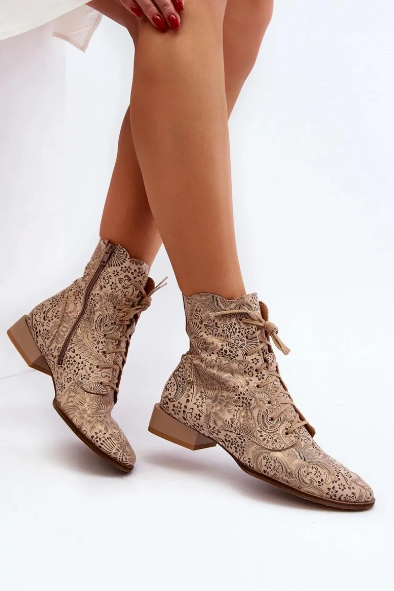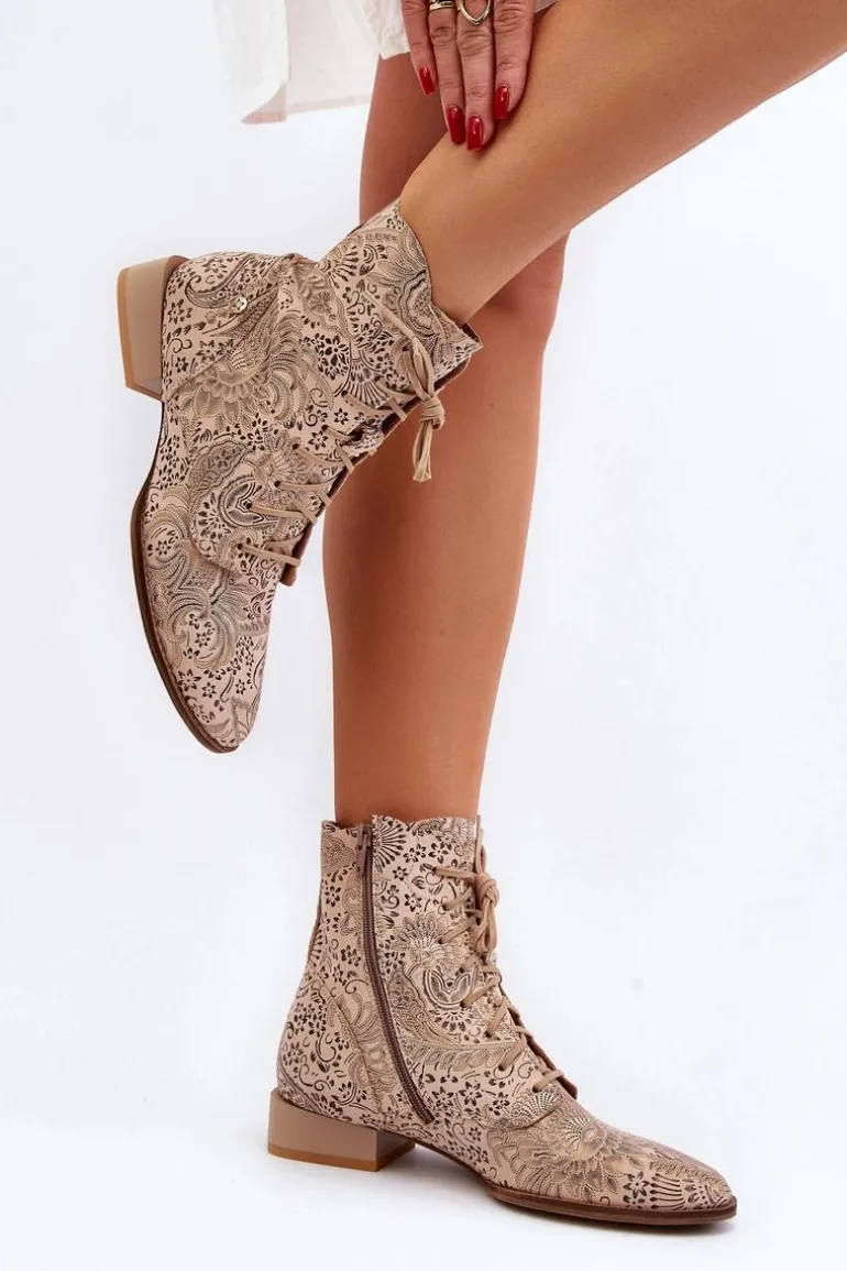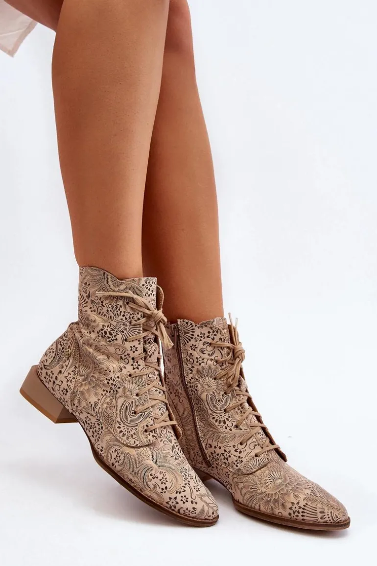 Botki damskie marki Maciejka to świetny wybór dla każdej kobiety ceniącej sobie jakość i wygodę. Wykonane ze skóry naturalnej. Zapinane na suwak, który umożliwi łatwe i szybkie zakładanie obuwia. Płaski obcas gwarantuje stabilność na każdym kroku. Wzorzysta cholewka sięgająca za kostkę. Ten ciekawy fason z pewnością uzupełni wiele różnych wiosennych stylizacji! Przy wyborze rozmiaru prosimy sugerować się tabelą rozmiarów.