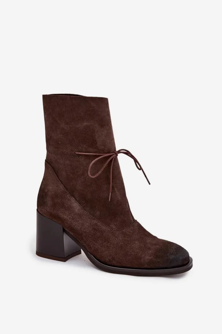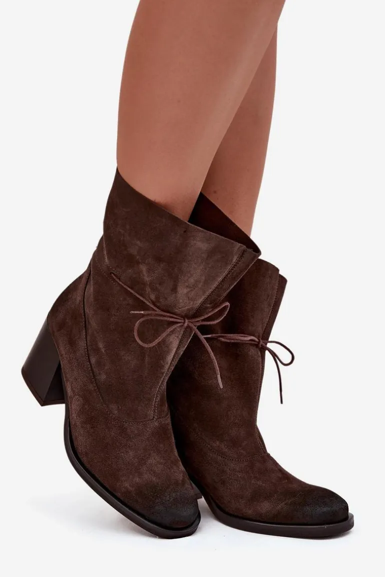 Botki damskie wykonane z naturalnego zamszu to elegancka propozycja dla kobiet ceniących styl i wygodę. Model wsuwany prezentuje się nowocześnie, a obcas w formie stabilnego słupka dodaje sylwetce lekkości i zapewnia komfort noszenia. Na cholewce znajduje się delikatny sznureczek, który pozwala dopasować botki do nogi i subtelnie podkreśla ich kobiecy charakter. To uniwersalny model, który doskonale sprawdzi się zarówno w codziennych, jak i bardziej eleganckich stylizacjach. Przy wyborze rozmiaru prosimy kierować się tabelą rozmiarów.