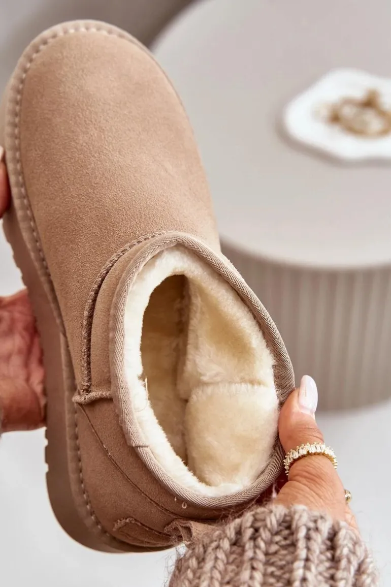 Niezwykle modne śniegowce idealnie sprawdzą się podczas mroźnych dni. Wykonane z naturalnego zamszu. Wnętrze butów zostało ocieplone grubym futerkiem. Osadzone na platformie, która skutecznie odizoluje od zimnego podłoża. Ten model koniecznie powinien znaleźć się w Twojej szafie! Przy wyborze rozmiaru prosimy sugerować się tabelą rozmiarów.