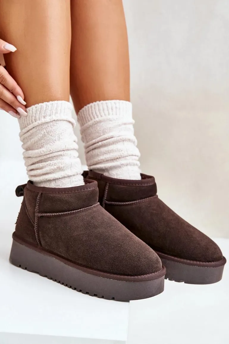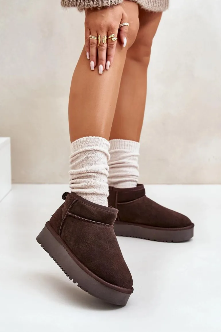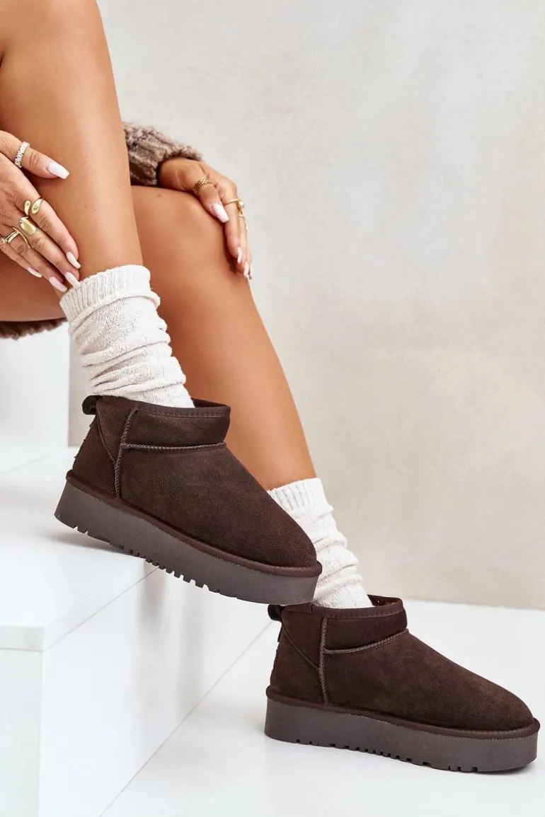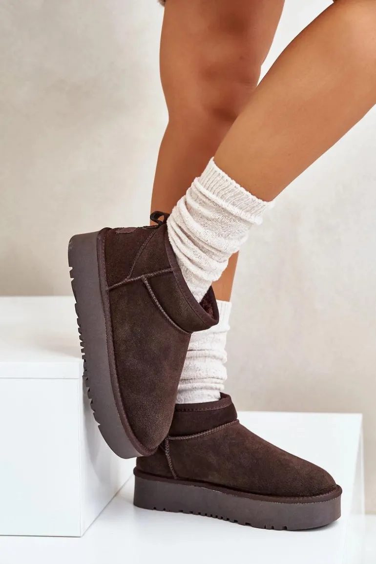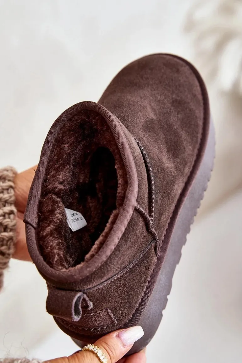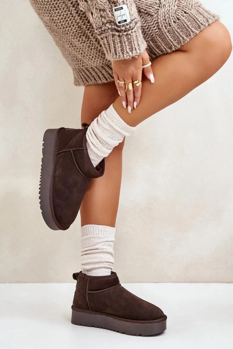 Niezwykle modne śniegowce idealnie sprawdzą się podczas mroźnych dni. Wykonane z naturalnego zamszu. Wnętrze butów zostało ocieplone grubym futerkiem. Osadzone na platformie, która skutecznie odizoluje od zimnego podłoża. Ten model koniecznie powinien znaleźć się w Twojej szafie! Przy wyborze rozmiaru prosimy sugerować się tabelą rozmiarów.