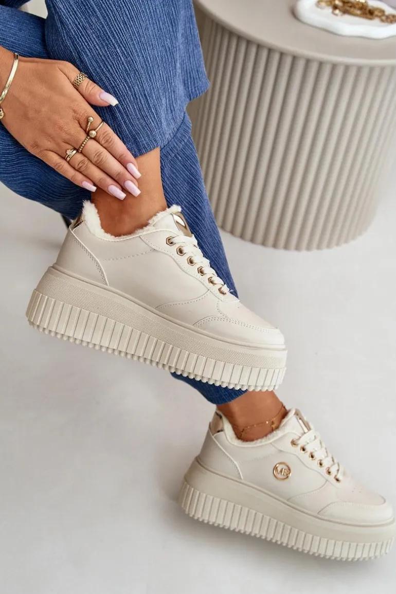 Damskie buty sportowe wykonane z eko skóry. Masywna podeszwa nie tylko unosi sylwetkę, ale także zapewnia doskonałą stabilność. Wnętrze ocieplone jest futerkiem, co zapewnia dodatkowy komfort i ochronę przed zimnem. Model klasycznie sznurowany. Idealne do noszenia zarówno na co dzień, jak i podczas aktywności na świeżym powietrzu. Przy wyborze rozmiaru prosimy kierować się tabelą rozmiarów.