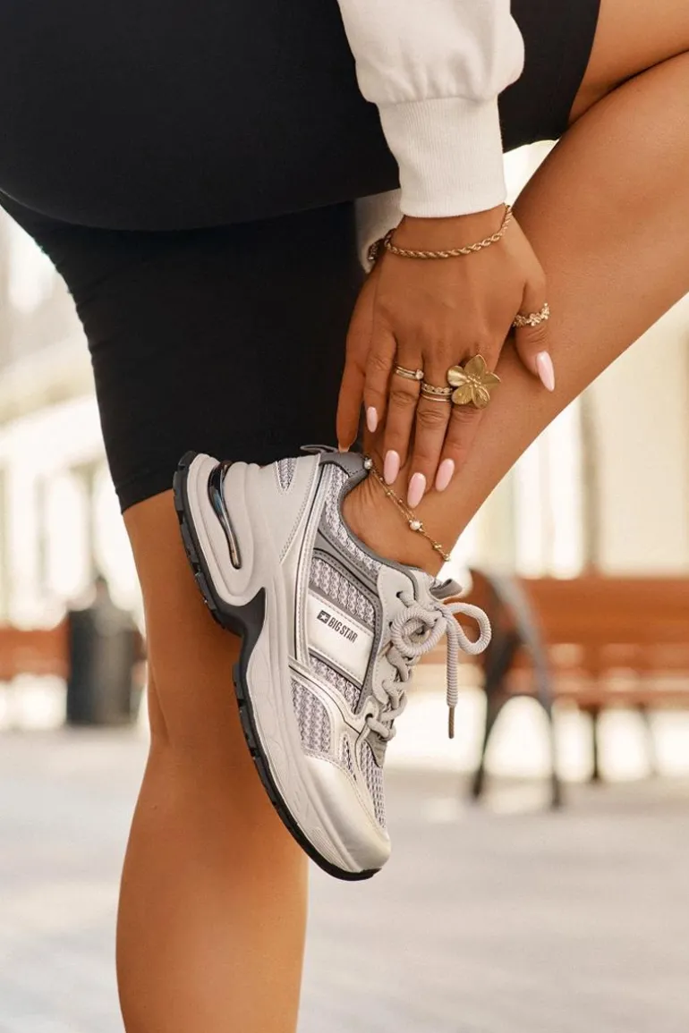 Sneakersy damskie od marki Big Star. Wykonane z połączenia eko skóry i materiału tekstylnego, to idealna propozycja dla osób ceniących styl i wygodę. Osadzone na masywnej podeszwie, zapewniają stabilność i komfort przez cały dzień. Zaokrąglone noski oferują swobodę ruchu, a miękka wkładka pokryta materiałem dba o odpowiednią amortyzację. Te sneakersy to doskonały wybór na co dzień! Przy wyborze rozmiaru prosimy sugerować się tabelą rozmiarów.