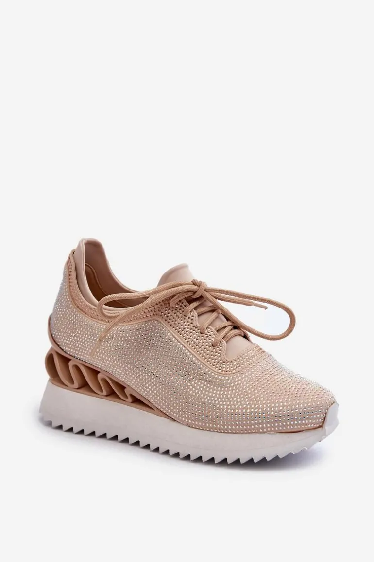 Sneakersy damskie zdobione cyrkoniami dodają blasku na każdym kroku. Osadzone na koturnie zapewniają dodatkową wysokość i stabilność. To obuwie, które nie tylko prezentuje się wyjątkowo, ale także zapewnia komfort noszenia przez cały dzień. Idealne na wiele różnych okazji, od casualowych spacerów po wieczorne wyjścia. Przy wyborze rozmiaru prosimy kierować tabelą rozmiarów.