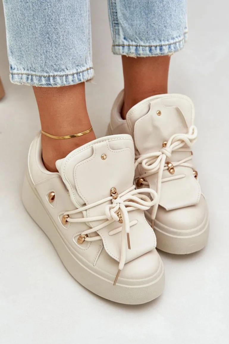 Damskie sneakersy wykonane z wysokiej jakości eko skóry to idealny wybór dla miłośniczek modnych rozwiązań. Osadzone na masywnej platformie, dodają kilku centymetrów wzrostu, jednocześnie zapewniając stabilność i komfort noszenia. Wkładka z miękkiej pianki zapewni wygodę nawet podczas długiego użytkowania. Ten stylowy fason idealnie dopełni wiele casualowych stylizacji! Przy wyborze rozmiaru prosimy kierować się tabelą rozmiarów.