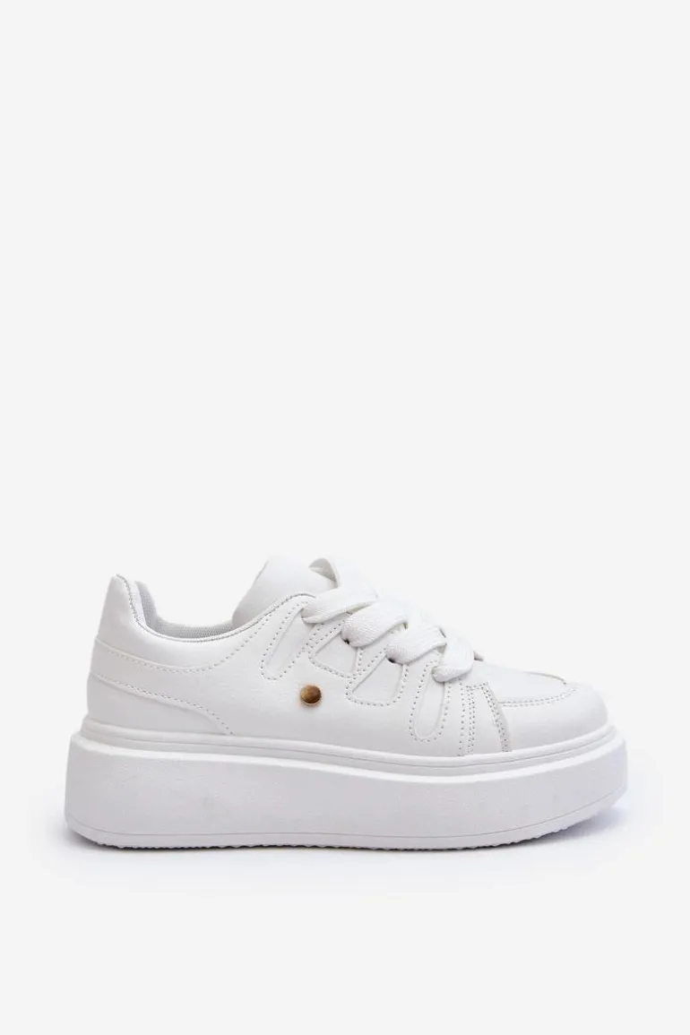 Sneakersy damskie wykonane z eko skóry. Osadzone na platformie. Noski zaokrąglone. Miękka wkładka zapewni wygodę podczas użytkowania. Fason ten idealnie dopełni stylizacje ze spodniami. Idealnie sprawdzą się podczas codziennych aktywności! Przy wyborze rozmiaru prosimy kierować się tabelą rozmiarów.