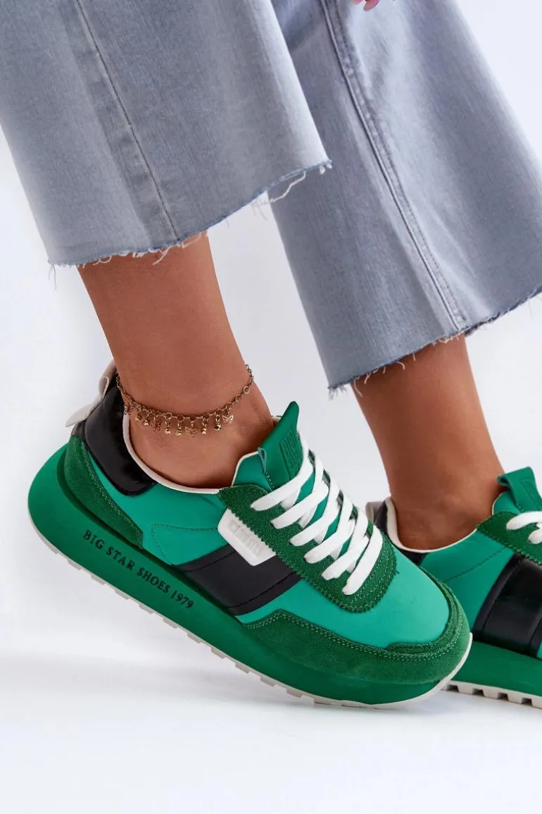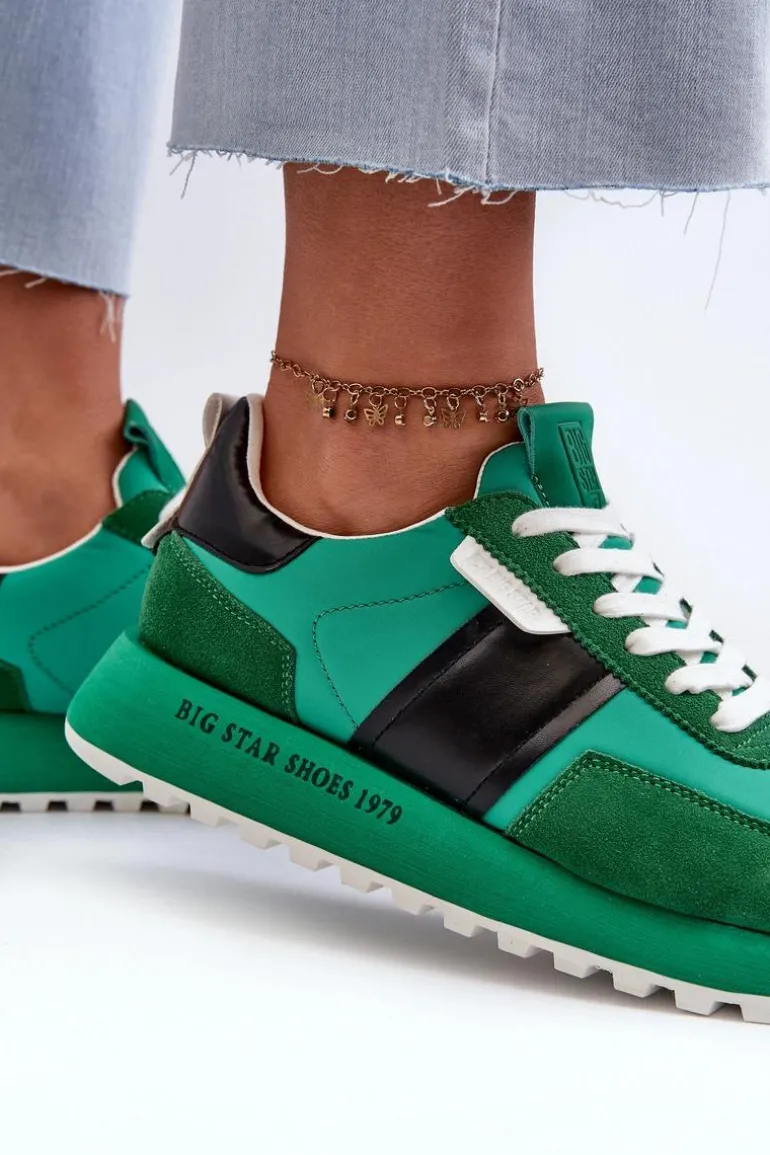 Sneakersy damskie marki Big Star. Wykonane ze skóry naturalnej i materiału tekstylnego, zapewniają nie tylko stylowy wygląd, ale także wygodę. Osadzone na platformie. Świetnie komponują się zarówno z jeansami, jak i dresami, dodając stylowej nuty każdej casualowej stylizacji. Wkładka MEMORY FOAM SYSTEM zapamiętuje kształt stopy, zapewnia doskonałe dopasowanie, absorbuje wstrząsy, jest odporna na odkształcenia oraz pozwala na odparowywanie wilgoci i regulacje temperatury. Przy wyborze rozmiaru prosimy sugerować się tabelą rozmiarów.