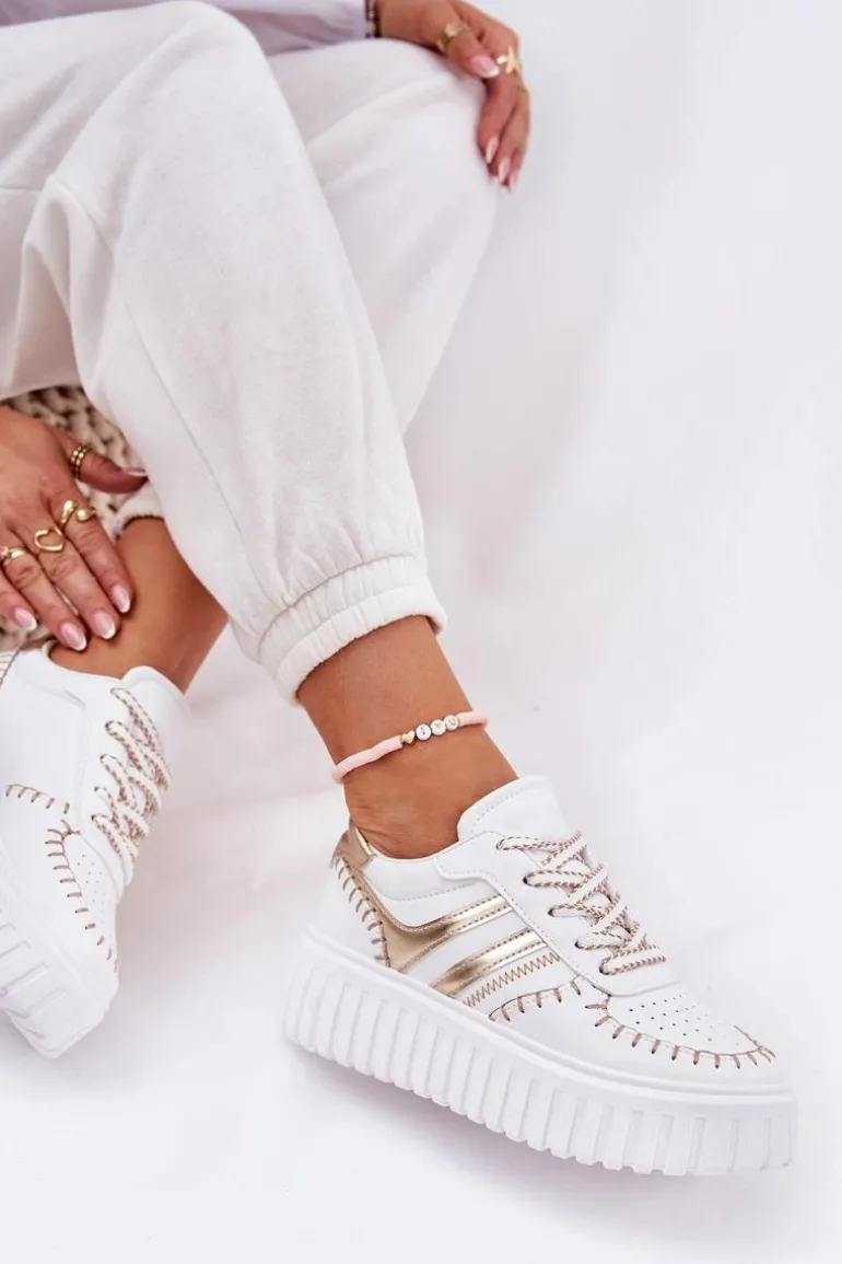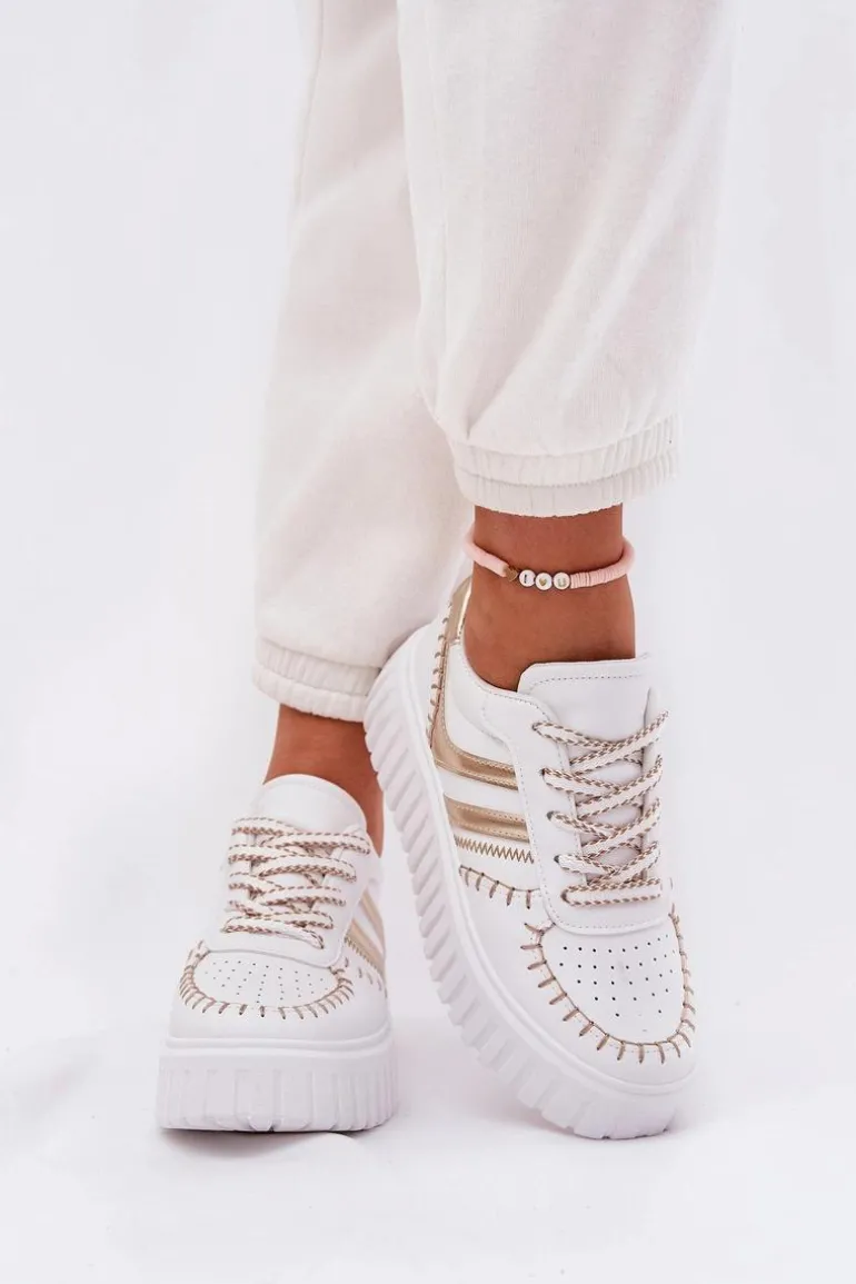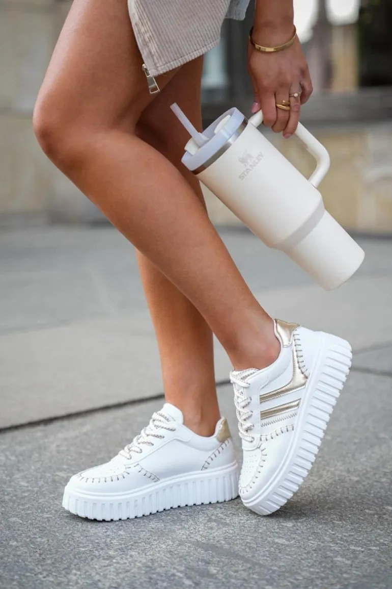 Stylowe sneakersy damskie z eko skóry, które łączą nowoczesny wygląd z wygodą. Osadzone na platformie, zapewniają komfort i modny wygląd. Wewnątrz znajdują się piankowa wkładka pokryta materiałem, co gwarantuje doskonałą amortyzację i komfort przez cały dzień. Zaokrąglone noski dodają lekkości i zapewniają swobodę ruchu. Te sneakersy są idealnym wyborem do wielu stylizacji, łącząc elegancję z casualowym luzem, świetnie pasując zarówno do sportowych, jak i codziennych outfitów. Przy wyborze rozmiaru prosimy kierować tabelą rozmiarów.