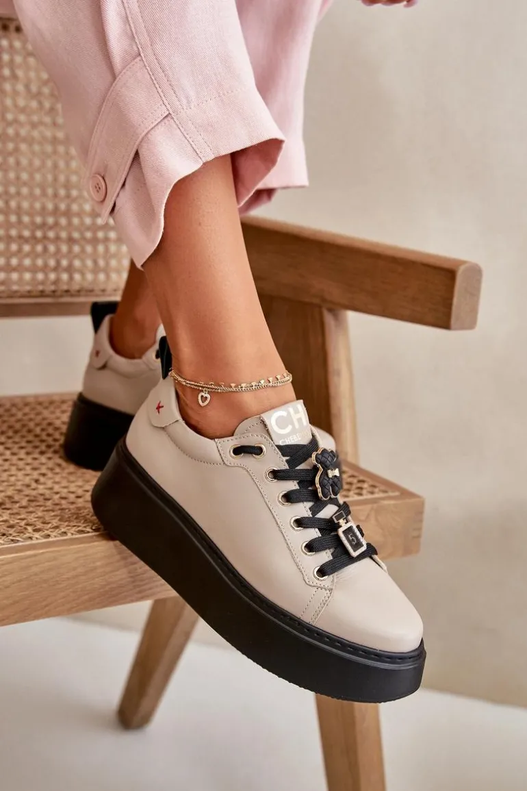 Sneakersy damskie wykonane ze skóry naturalnej to doskonały wybór dla miłośniczek mody i wygody. Osadzone na platformie, zapewniają dodatkowy komfort i lekkość podczas noszenia. Ich zaokrąglone noski dodają całości delikatności i uniwersalnego charakteru. Model ten wyróżnia się modnymi, ozdobnymi przypinkami na sznurowaniach, które nadają oryginalny wygląd. Te sneakersy doskonale sprawdzą się zarówno w casualowych, jak i bardziej eleganckich stylizacjach, będąc stylowym dodatkiem do każdej garderoby! Przy wyborze rozmiaru prosimy sugerować się tabelą rozmiarów.