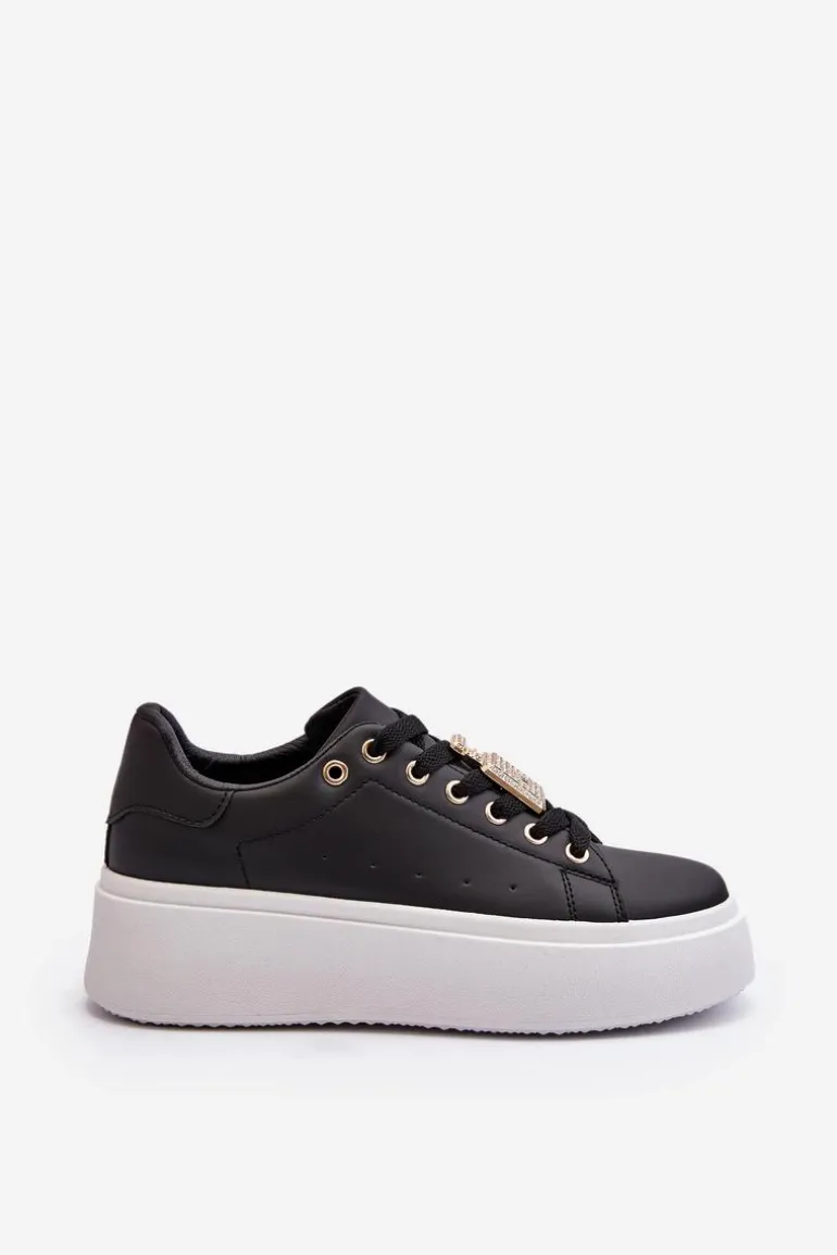 Damskie buty sportowe zostały wykonane z eko skóry. Osadzone na platformie. Model ten jest klasycznie sznurowany. Świetnie sprawdzą się jako obuwie na co dzień, do pracy czy szkoły. Wkładka z pianki zadba o Twój komfort. Na sznurówkach ozdoba w postaci perfum. Ten model powinien znaleźć się w Twojej szafie! Przy wyborze rozmiaru prosimy kierować się tabelą rozmiarów.