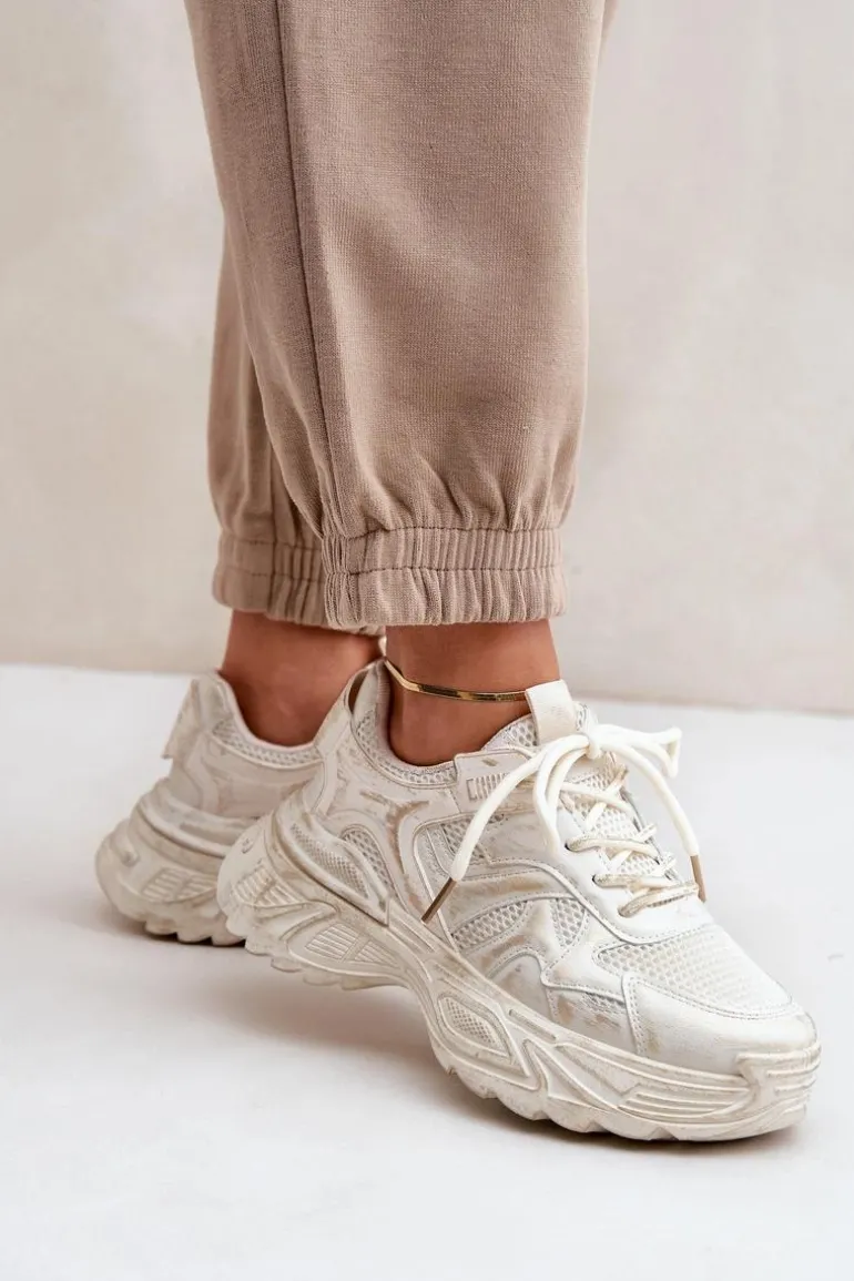 Damskie sneakersy wykonane z eko skóry to stylowe i wygodne obuwie na co dzień. Osadzone na stabilnej platformie, zapewniają komfort użytkowania oraz modny wygląd. Model sznurowany umożliwia idealne dopasowanie do stopy. Miękka wkładka gwarantuje wygodę, nawet podczas długiego noszenia. Cholewka ozdobiona modnymi przetarciami dodaje charakteru i nowoczesnego stylu. Idealne do casualowych stylizacji, doskonale sprawdzą się w miejskich zestawieniach. Przy wyborze rozmiaru prosimy kierować tabelą rozmiarów.