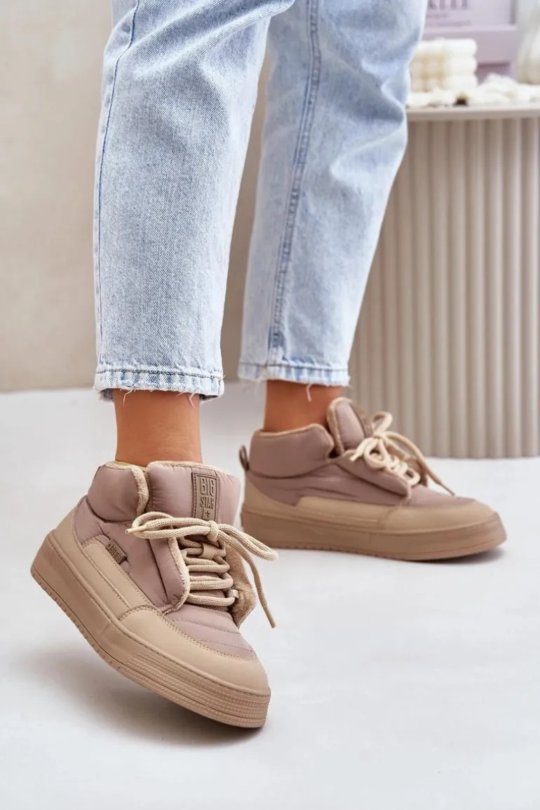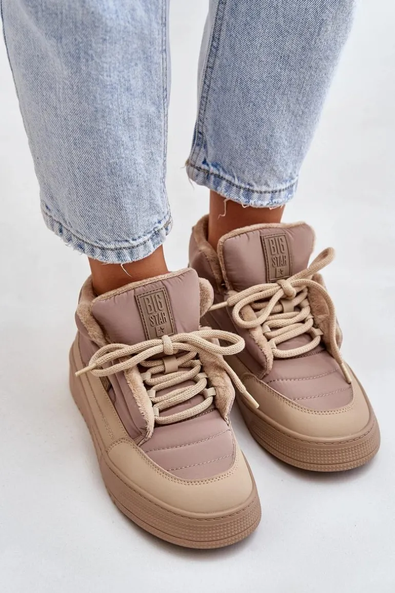 Ocieplane sneakersy od marki Big Star to stylowy wybór na chłodniejsze dni. Wykonane z materiału tekstylnego. Osadzone na podeszwie z gumowego tworzywa, zapewniają trwałość i komfort noszenia. Model sznurowany. Cholewka sięga do kostki. Idealnie sprawdzą się w codziennych, casualowych stylizacjach, gwarantując ciepło i modny wygląd. Przy wyborze rozmiaru prosimy sugerować się tabelą rozmiarów.