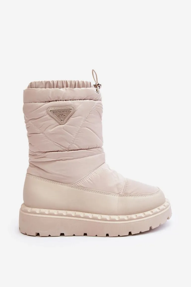 Śniegowce damskie osadzone na grubej podeszwie z gumowego tworzywa. Wykonane z połączenia eko skóry i materiału tekstylnego. Środek ocieplony grubym futerkiem. Na górze cholewki ściągacz. Idealne na mroźne dni! Koniecznie powinnaś je mieć! Przy wyborze rozmiaru prosimy sugerować się tabelą rozmiarów.
