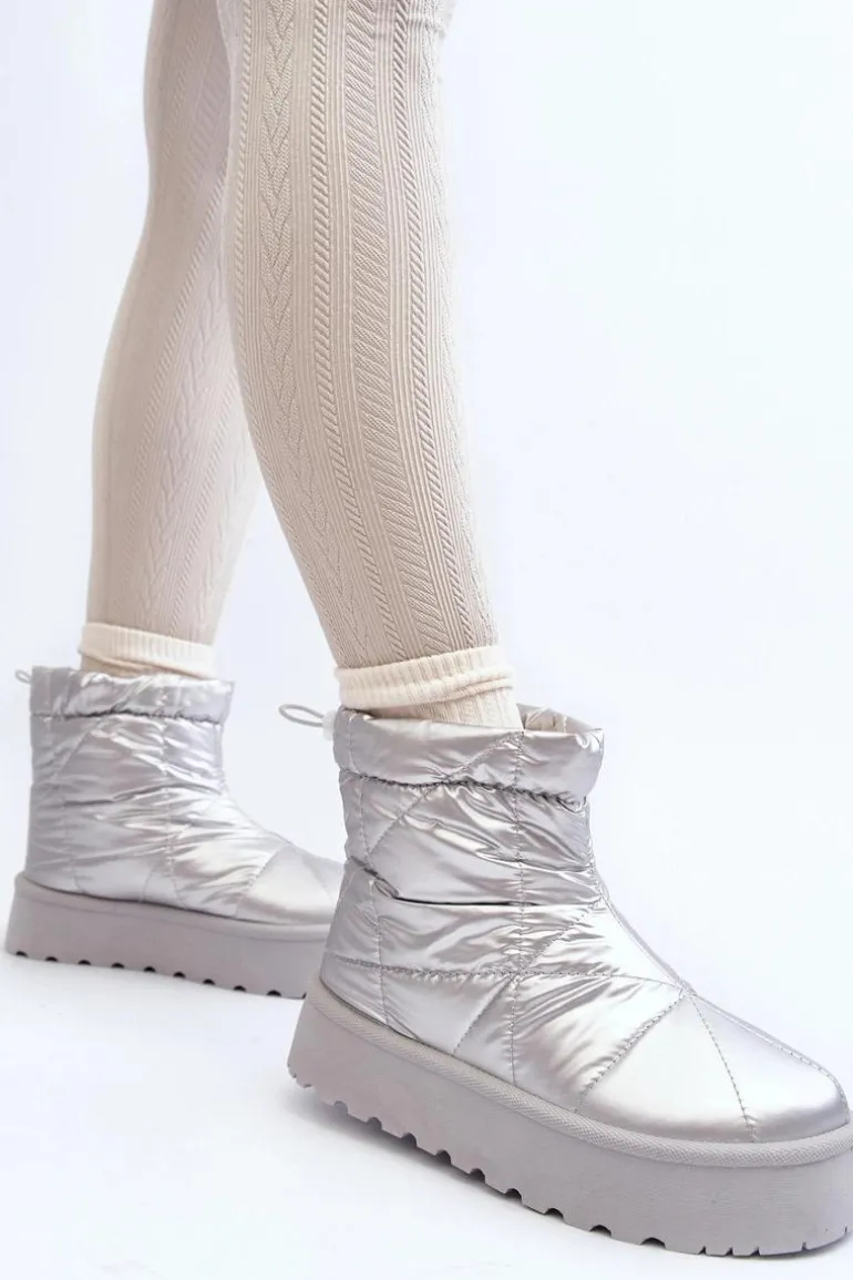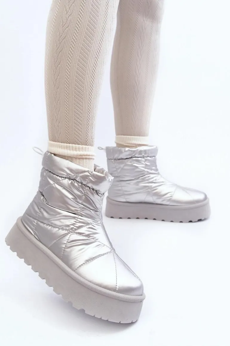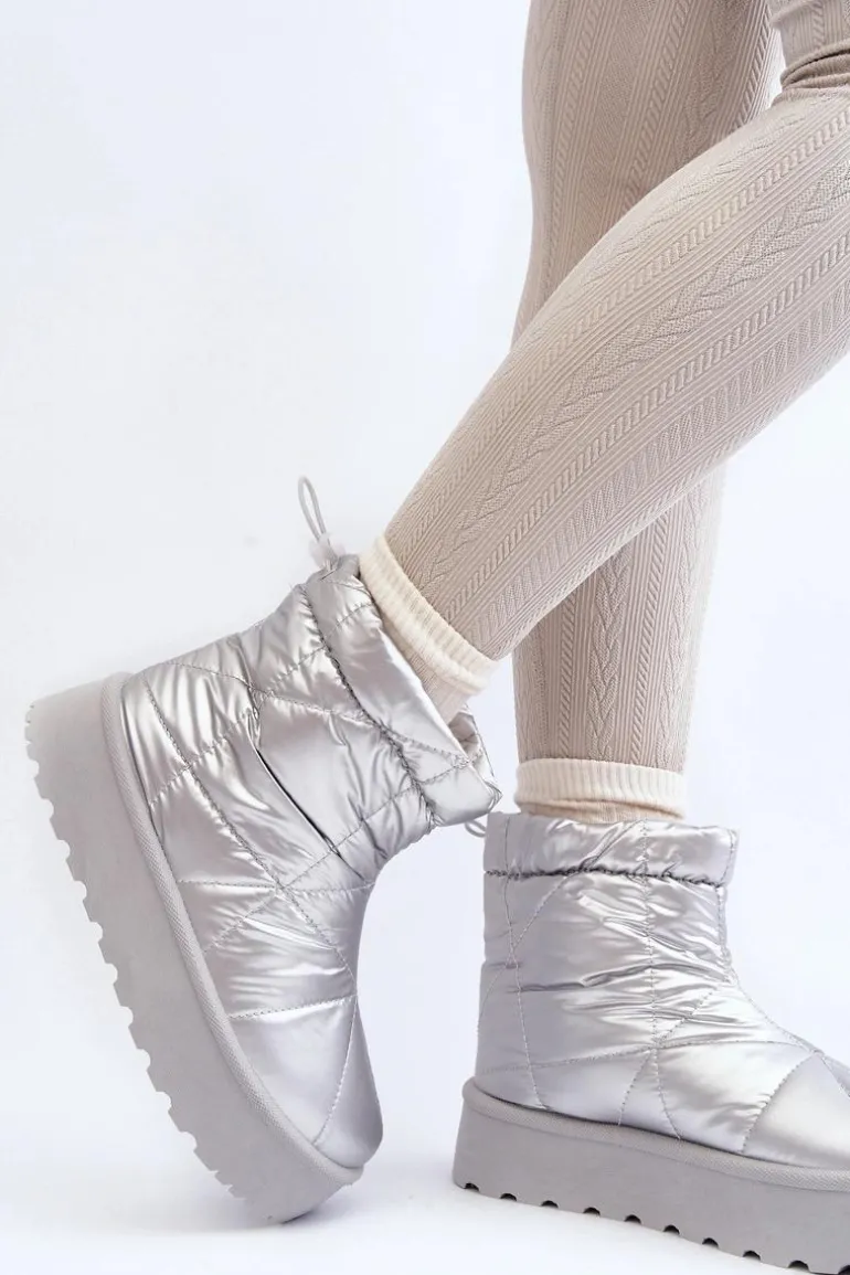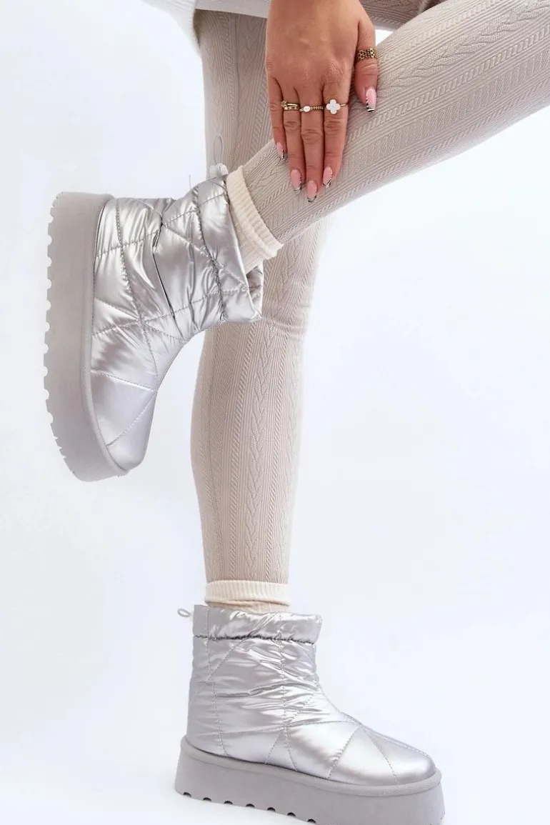 Śniegowce Damskie Na Masywnej Platformie Srebrne Fionia