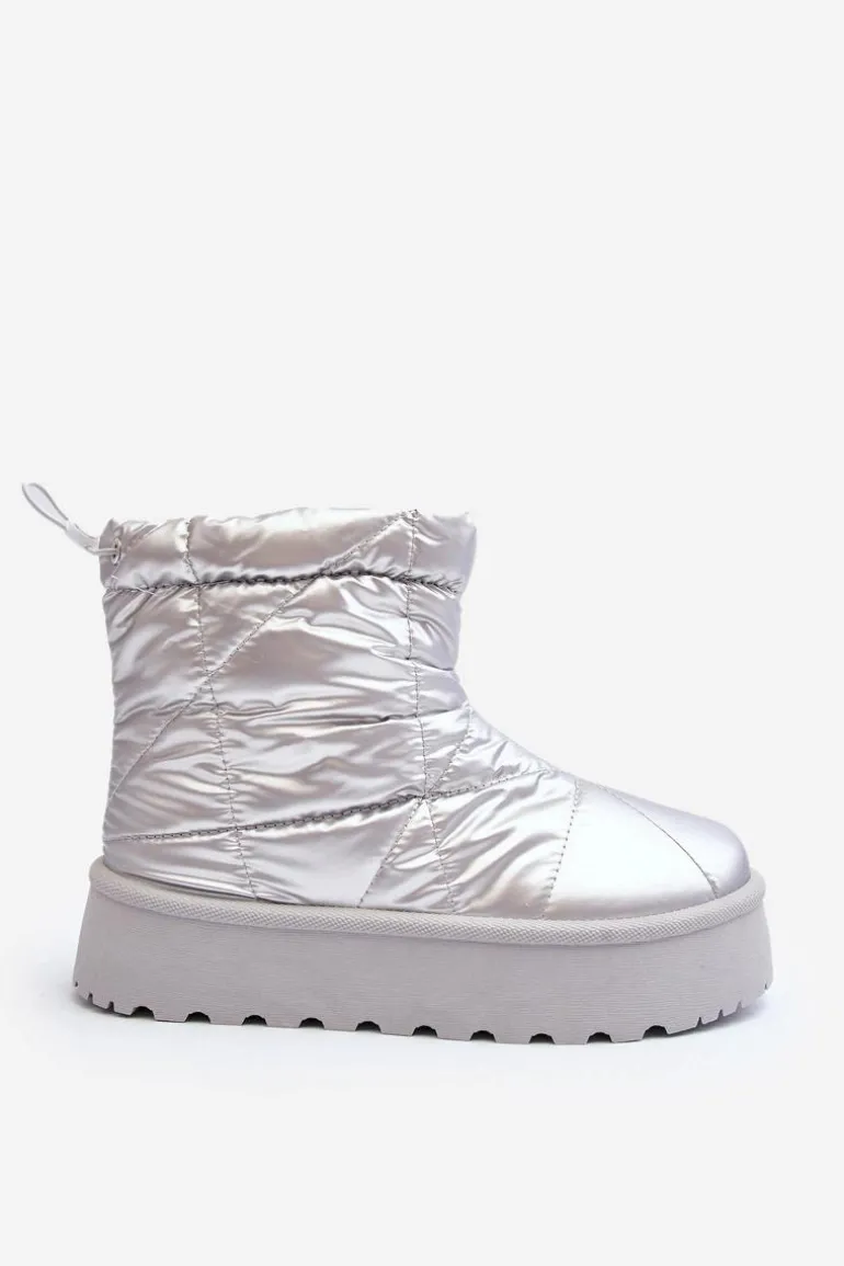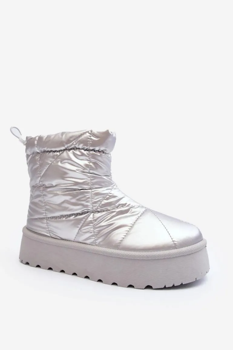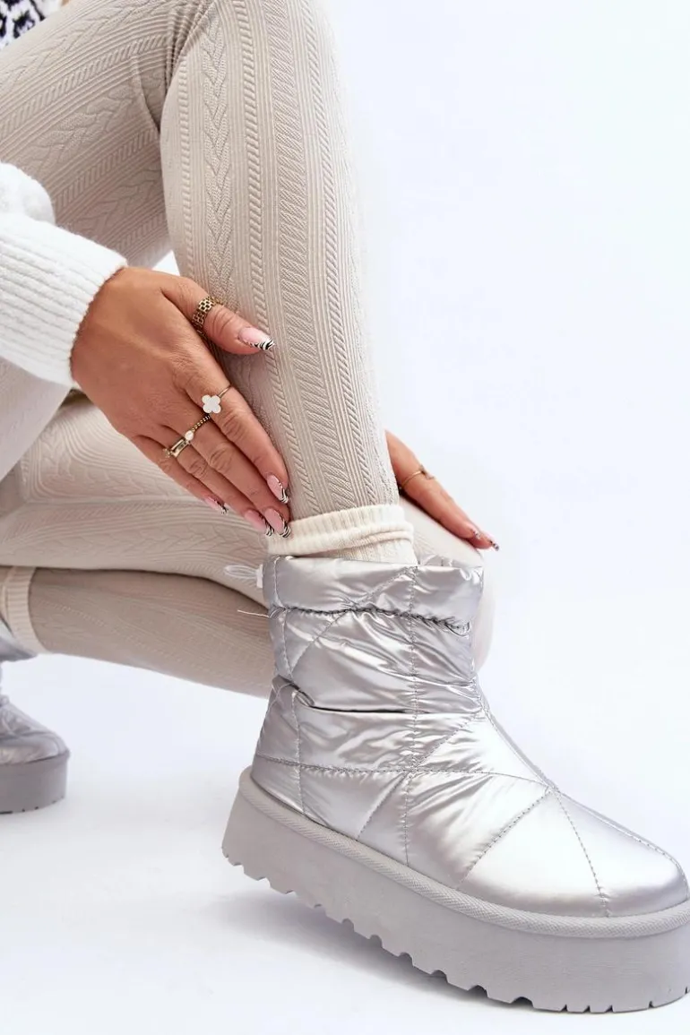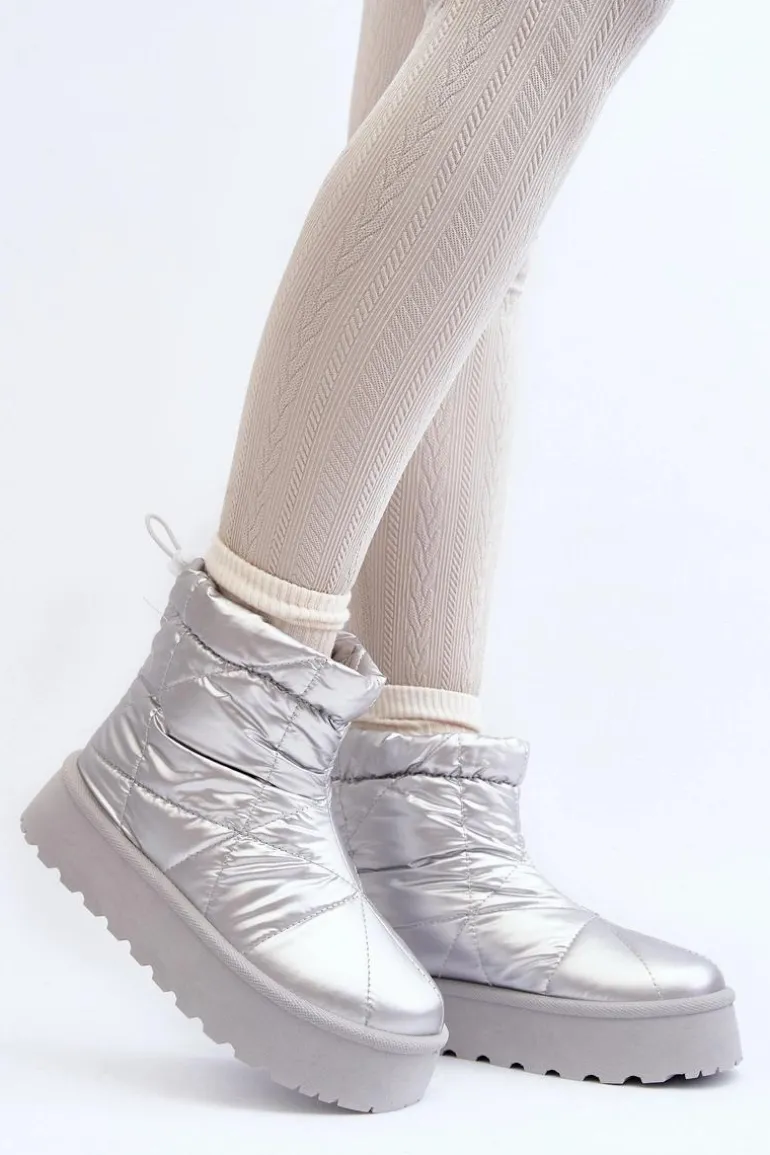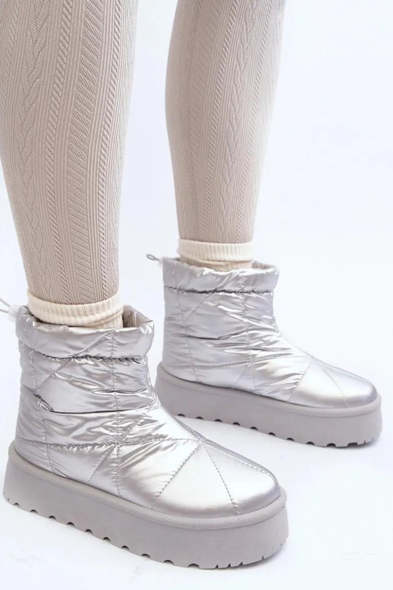 Śniegowce Damskie Na Masywnej Platformie Srebrne Fionia