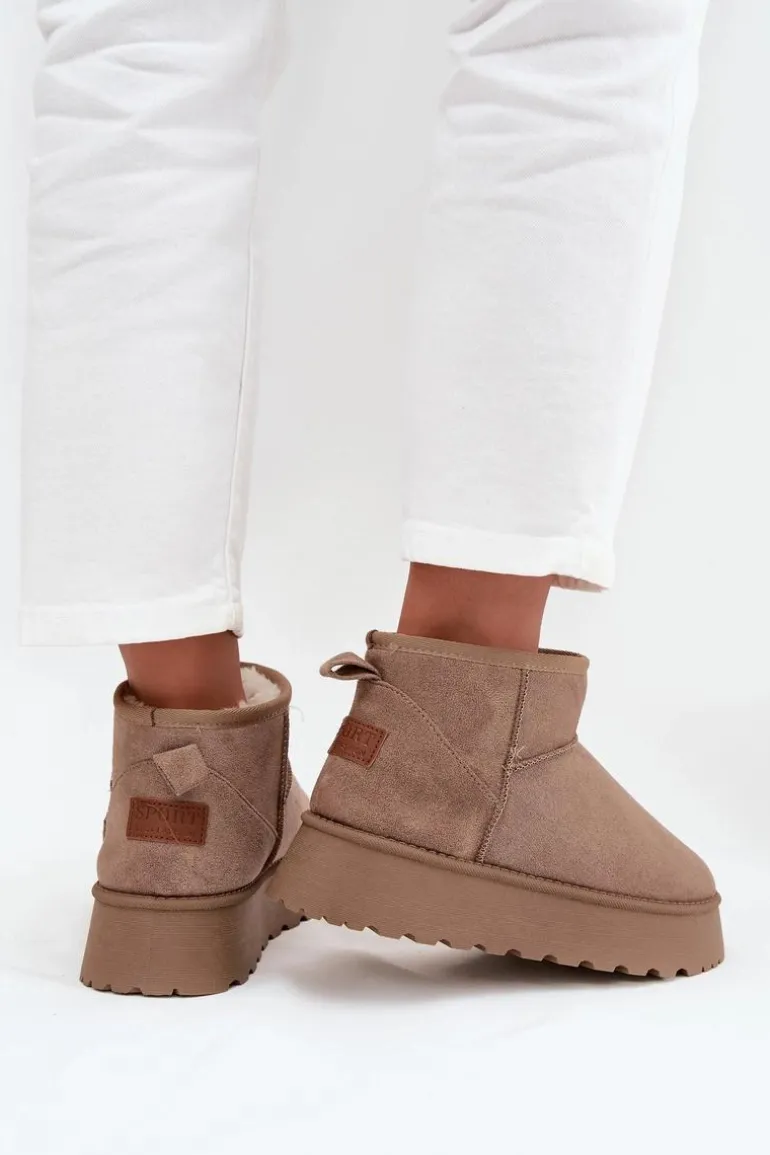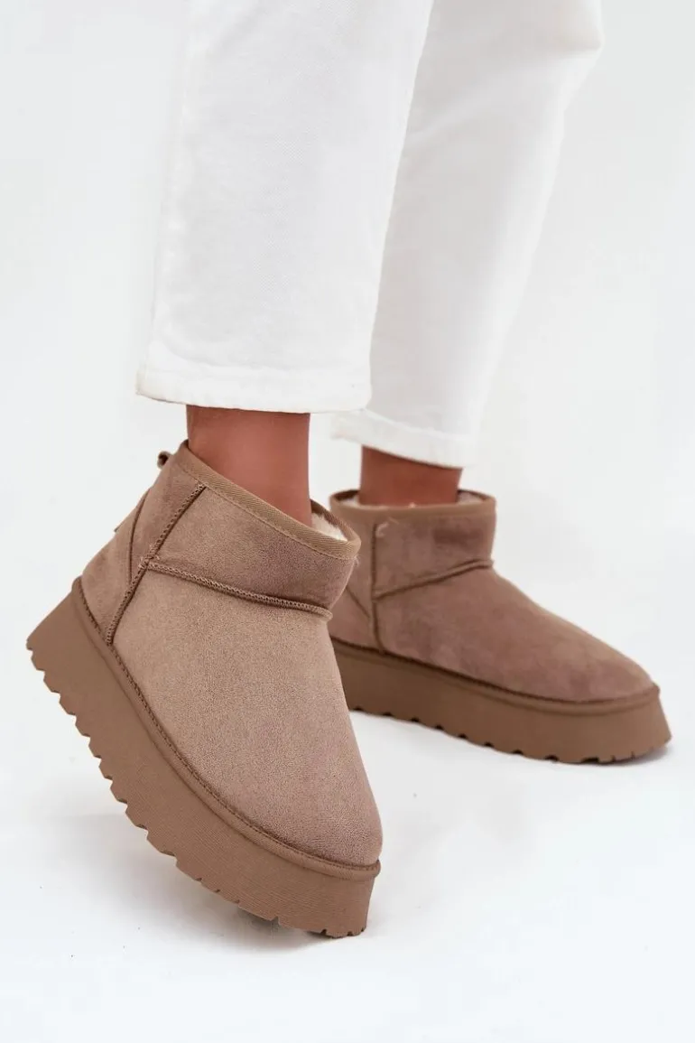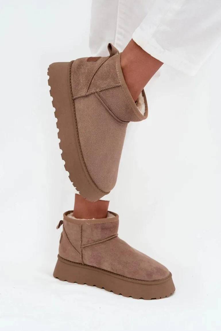 Modne śniegowce damskie wykonane z eko zamszu to idealny wybór na zimowe dni. Osadzone na platformie skutecznie izolują od chłodu, a miękkie futerko wewnątrz zapewnia komfort i ciepło. Stylowe i wygodne, świetnie sprawdzą się w codziennych, zimowych stylizacjach. Przy wyborze rozmiaru prosimy kierować tabelą rozmiarów.