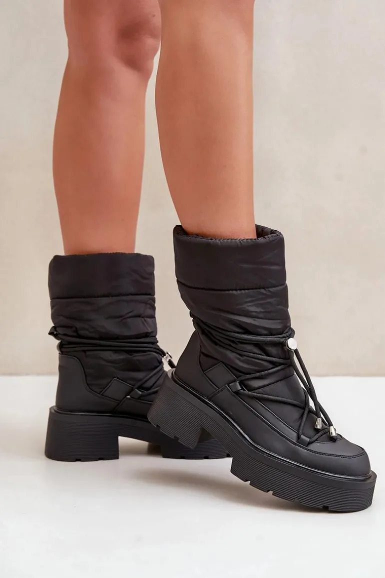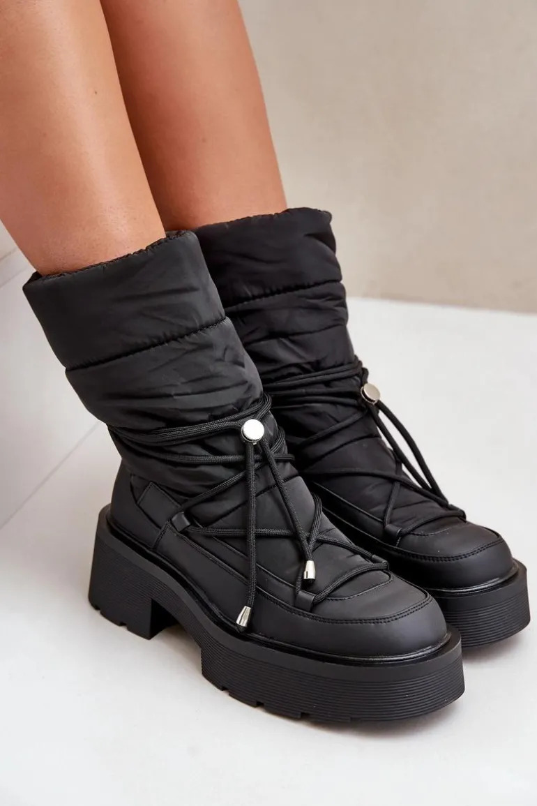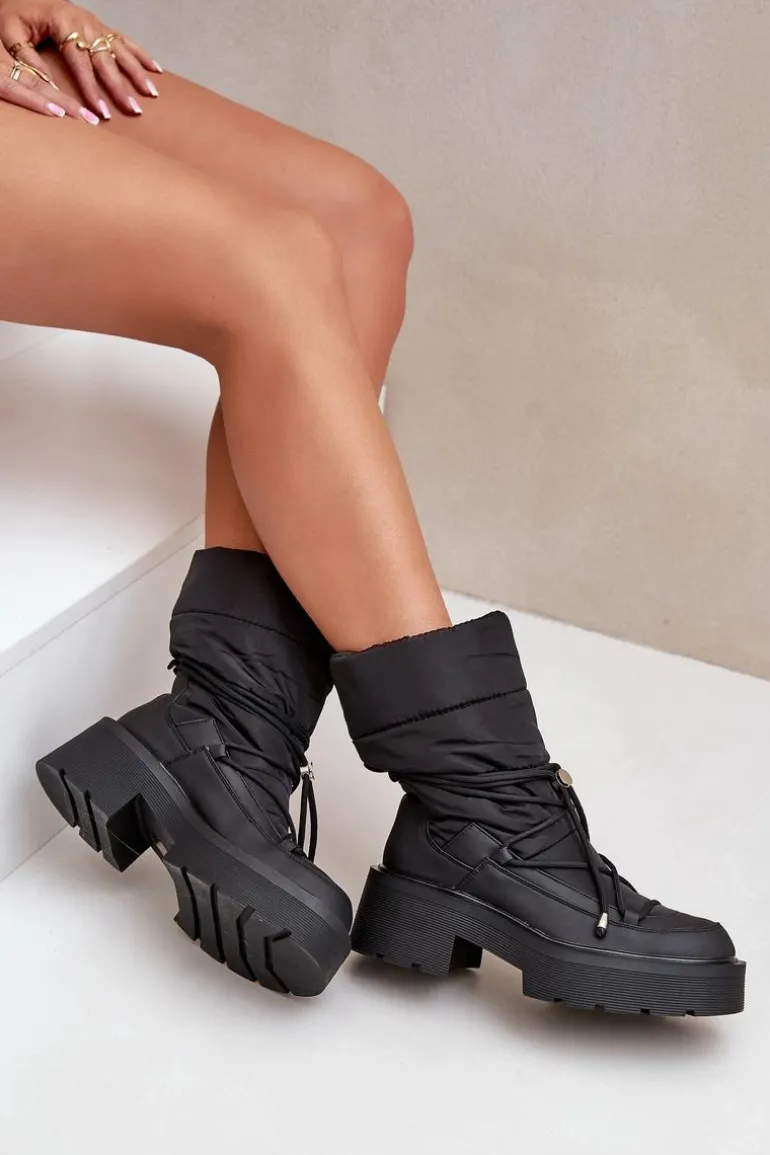 Śniegowce to idealne buty na chłodne i wietrzne dni. Wykonane z połączenia materiału tekstylnego oraz eko skóry. Model ten został osadzony na masywnej platformie i płaskim obcasie ze żłobieniami. Zapiętek jest usztywniany. Środek został ocieplony kocem obuwniczym. Świetny model dla każdego zmarzlucha! Przy wyborze rozmiaru prosimy sugerować się tabelą rozmiarów.