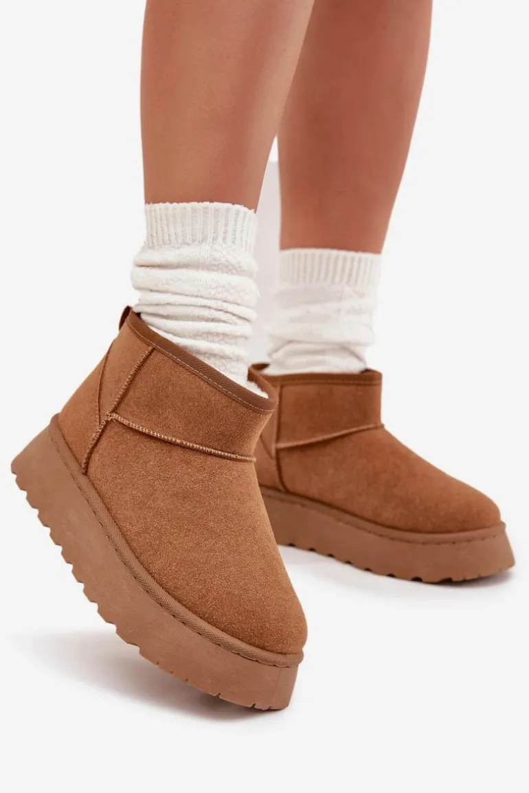Poznaj swoje nowe ulubione buty na zimę – śniegowce damskie Vesirae w kolorze camel to idealne połączenie stylu, wygody i ciepła. Wykonane z miękkiego eko-zamszu i wyściełane puszystym futerkiem, zapewniają przytulność nawet w największy mróz. Dzięki wysokiej cholewce i solidnej platformie (ok. 3 cm), Twoje stopy pozostaną suche i ciepłe podczas spacerów po zaśnieżonych ulicach.