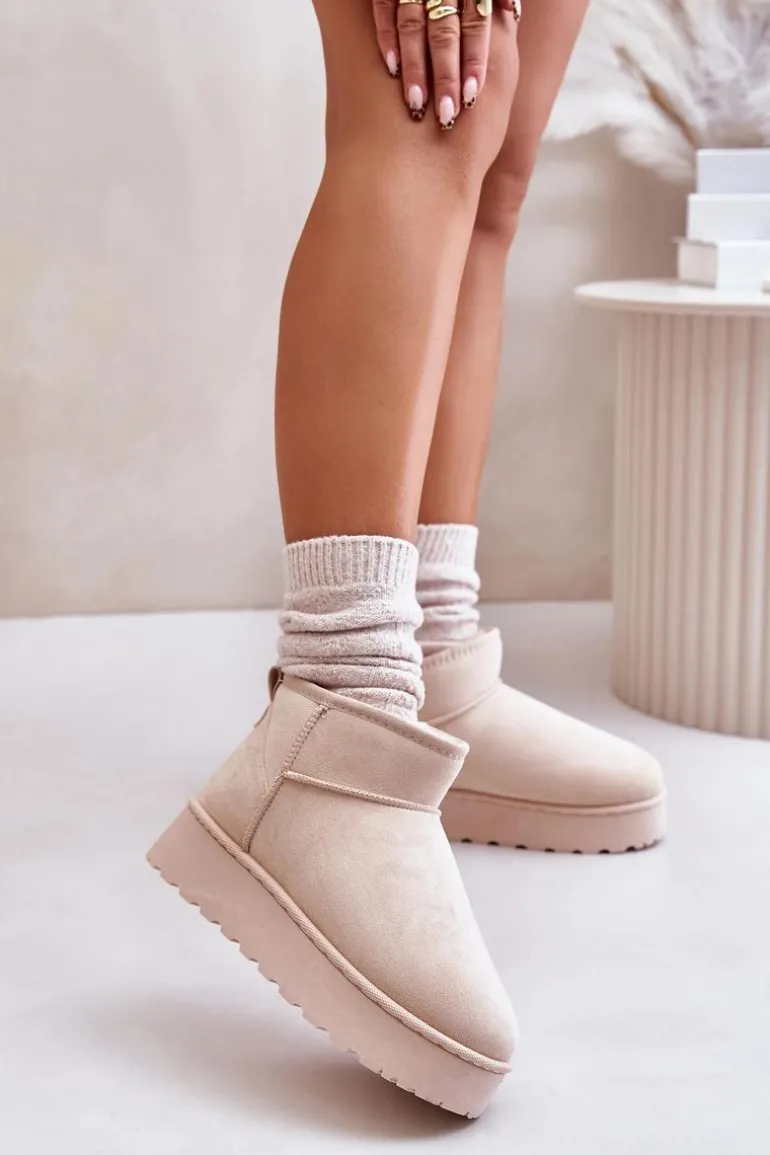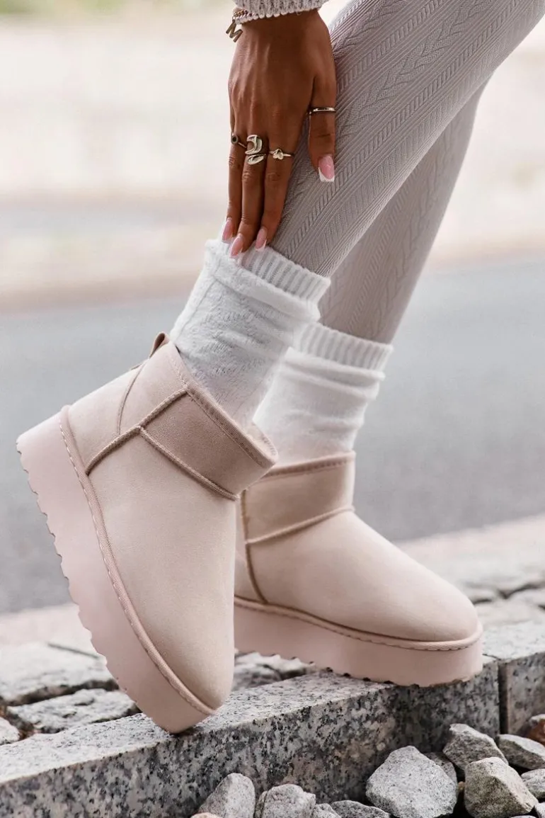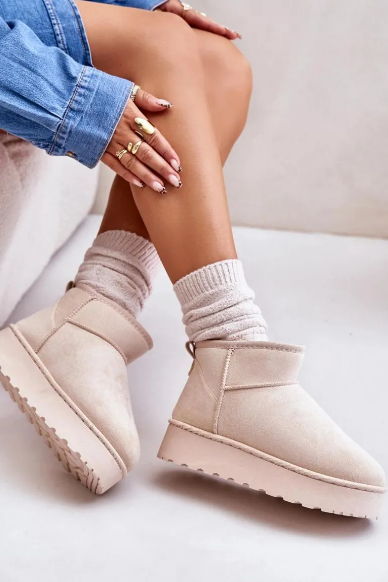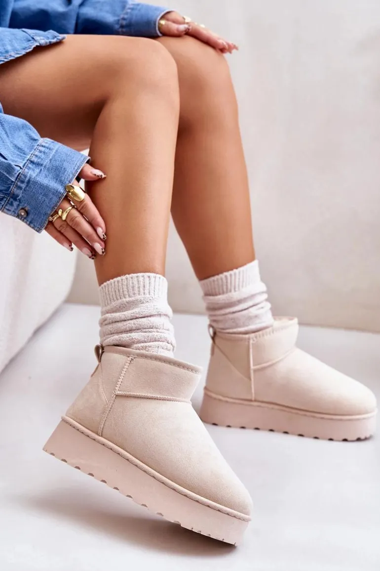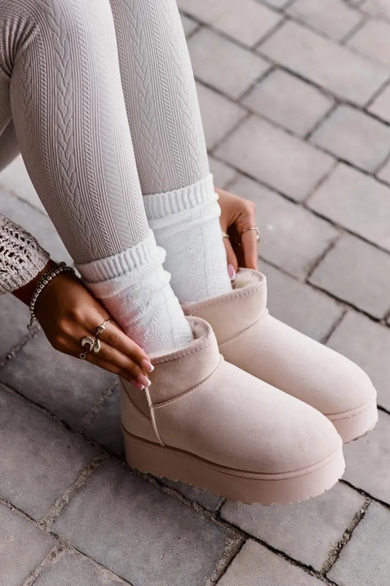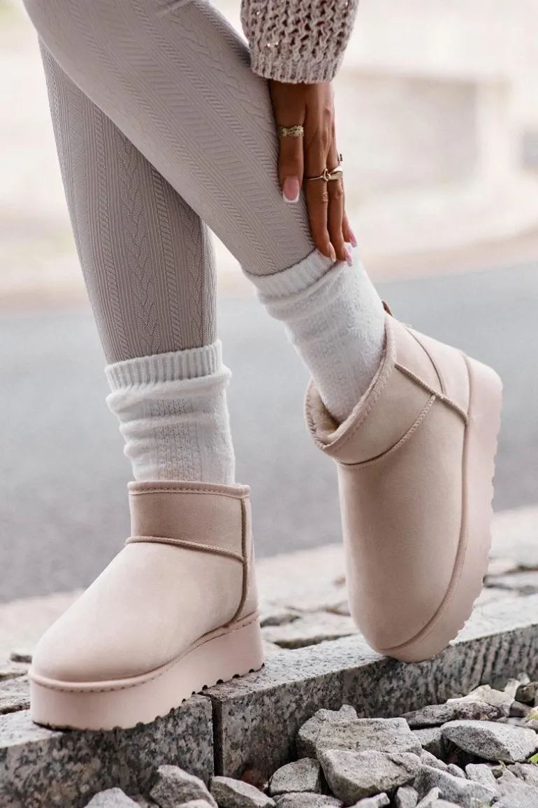 Śniegowce Damskie Na Platformie Ocieplane Futerkiem Jasnobeżowe Xamella